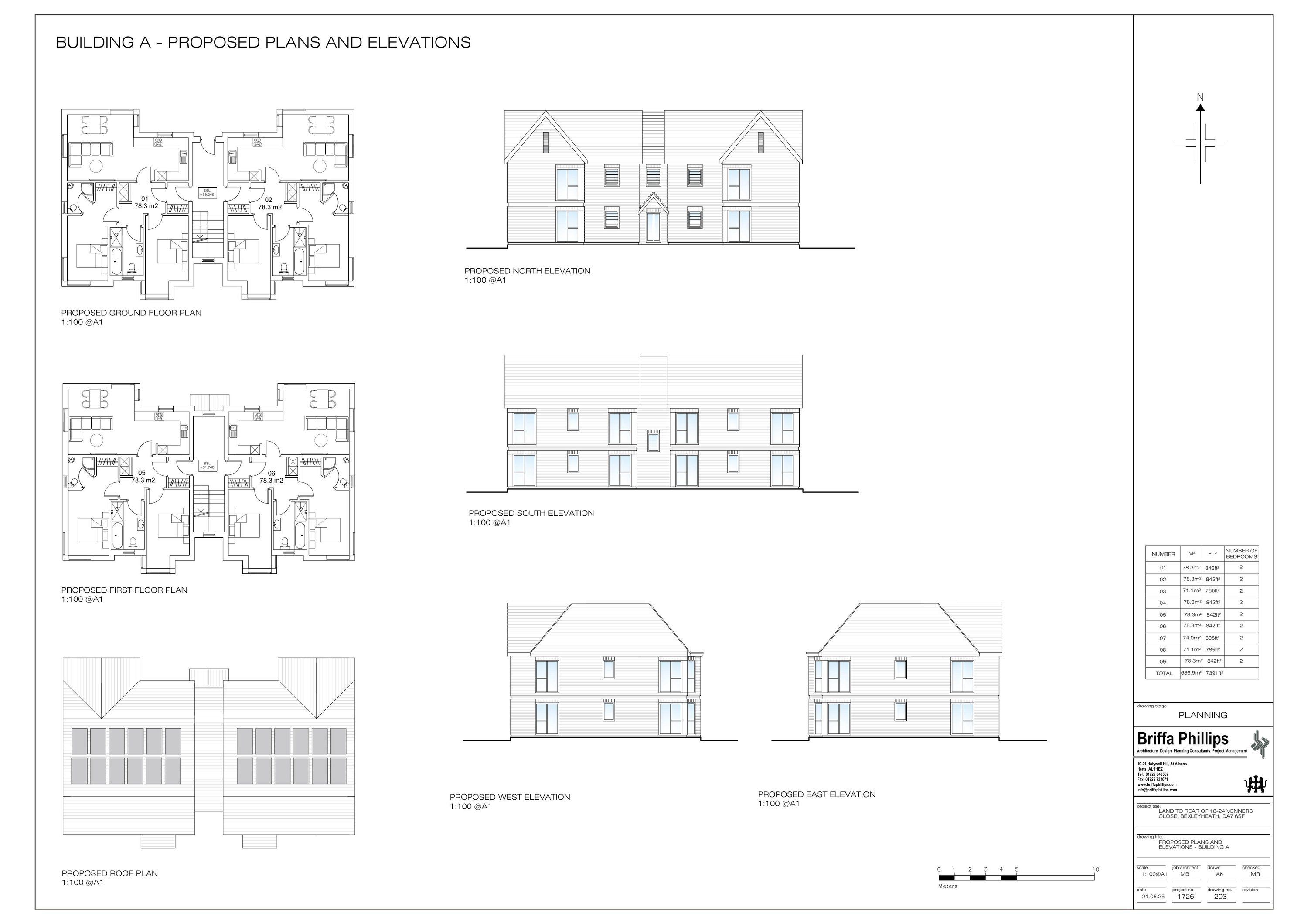 Construction of nine 2-bedroom dwellings with associated landscaping and parking.