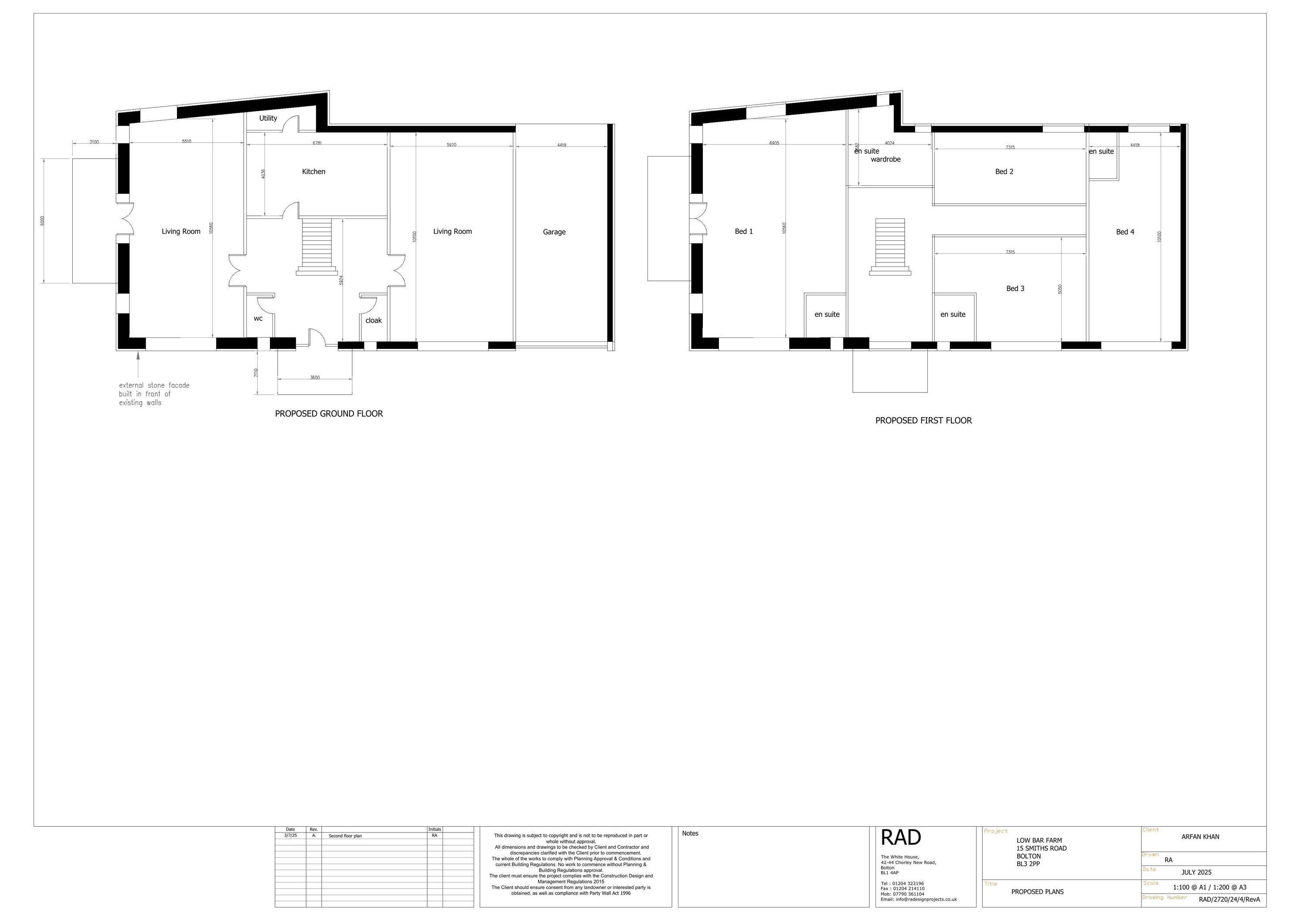 ERECTION OF A FIRST FLOOR EXTENSION TO CREATE TWO STOREY DWELLING, BALCONIES TO FRONT AND SIDE AND ALTERATION TO EXISTING EXTERNAL MATERIALS TOGETHER WITH A NEW BOUNDARY WALL