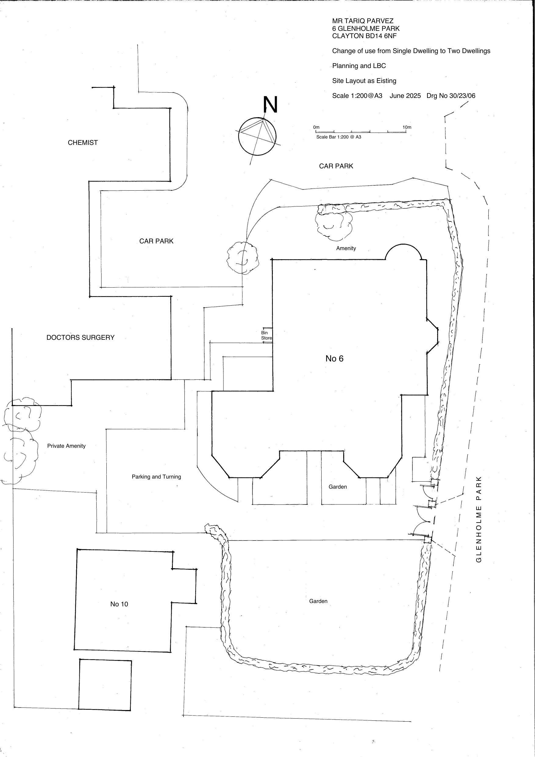 Subdivide dwelling into two houses with 2 EV points, parking, turning area and dividing walls/fencing.