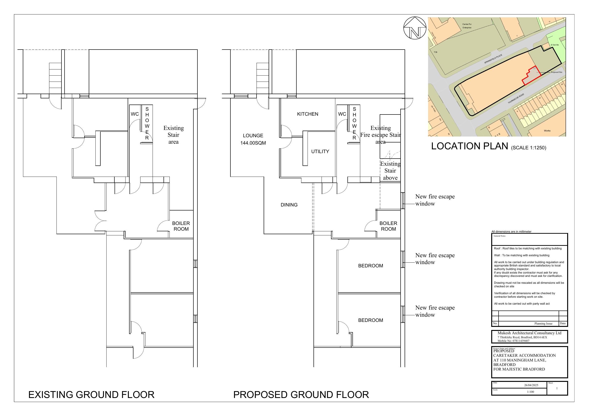 Change of use of existing store to a 2-bed residential unit for caretaker accommodation. Alterations to existing windows on south elevation