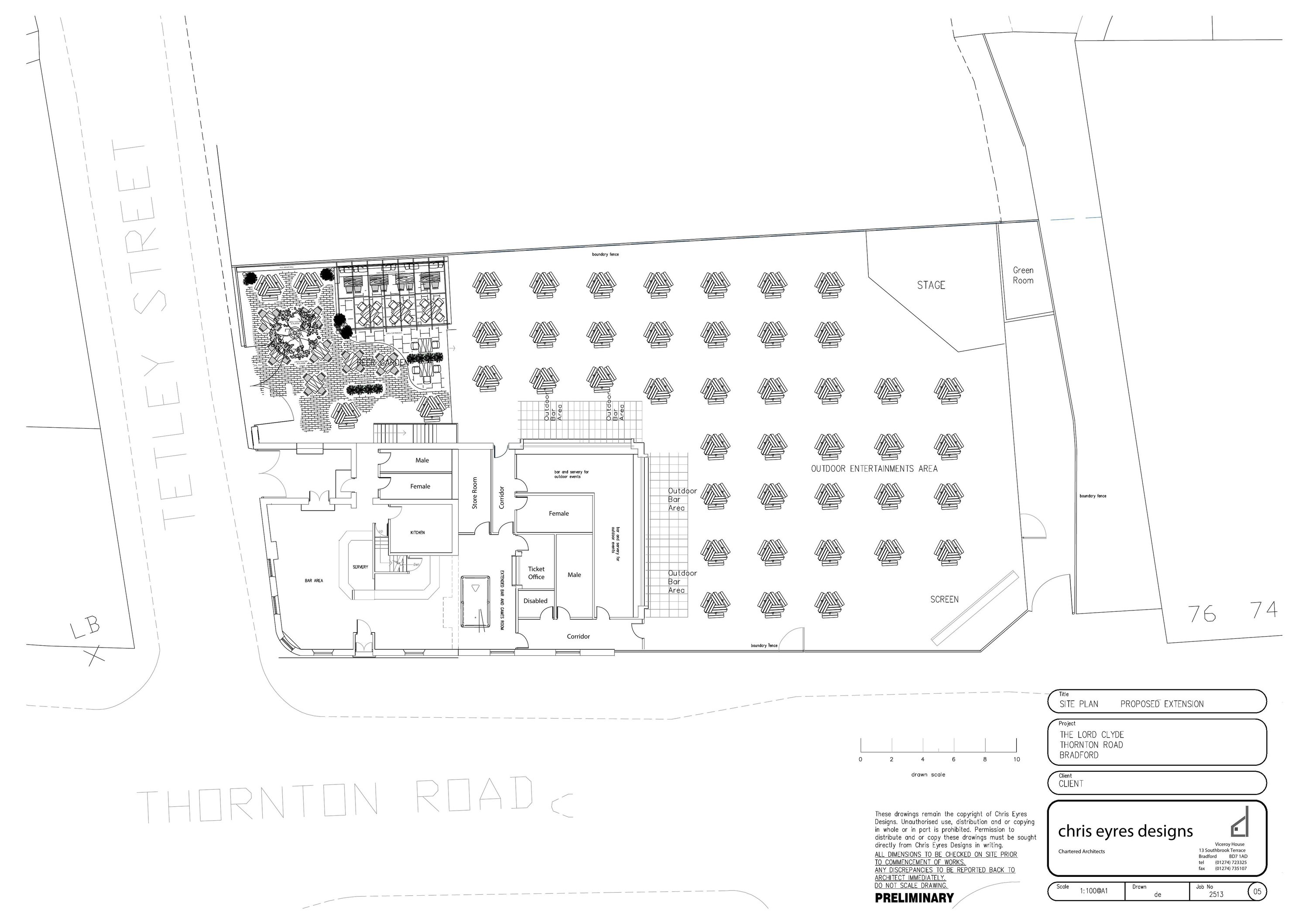 Single storey extension to public house to form kiosks, WCs and ancillary back-of-house and creation of managed external beer garden with fixed daytime performance stage and outdoor screen, seating, lighting, first floor roof patio, boundary treatments and associated works