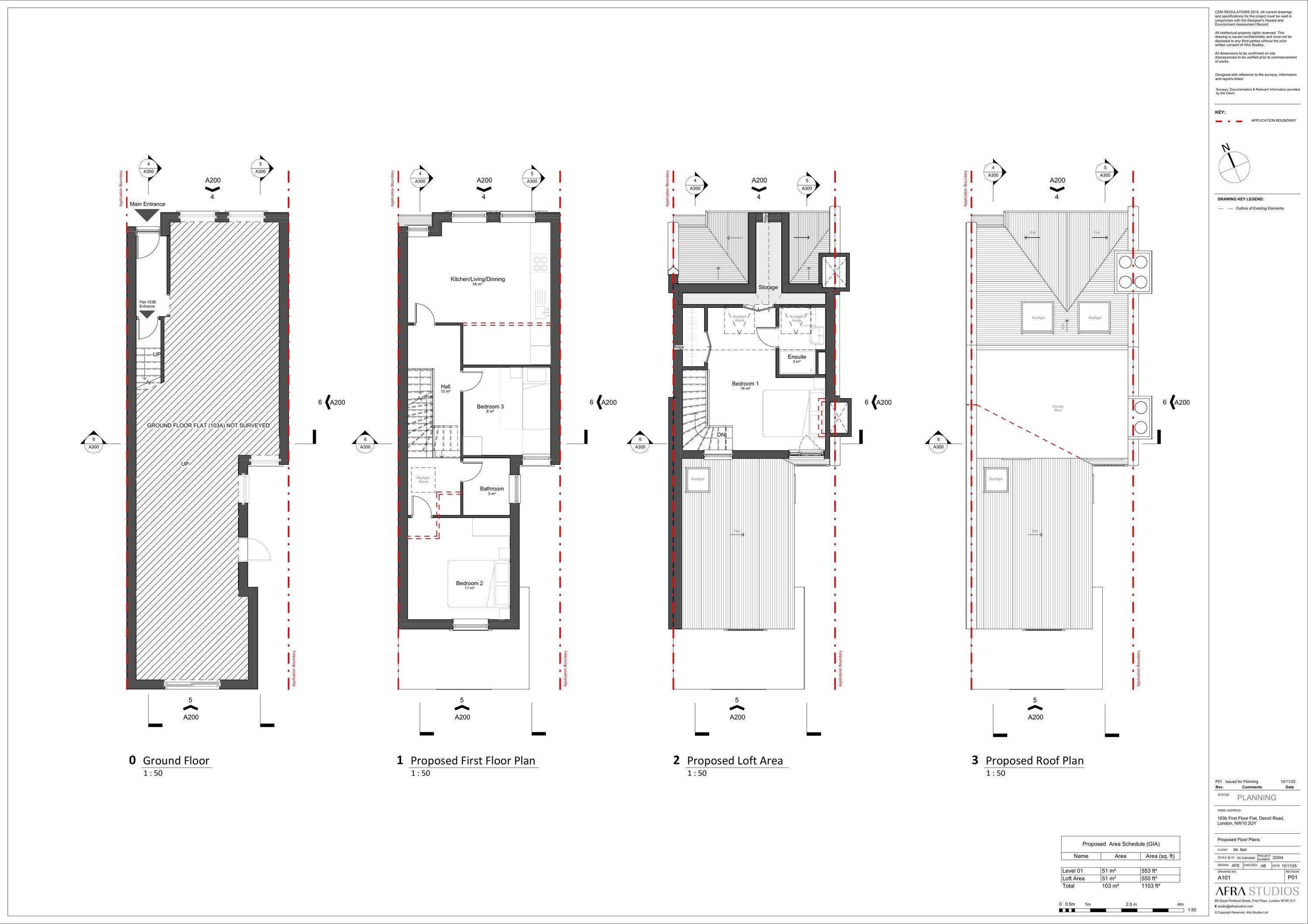 Proposed rear dormer extension with Juliet balcony and 2x front rooflights to the first floor flat.