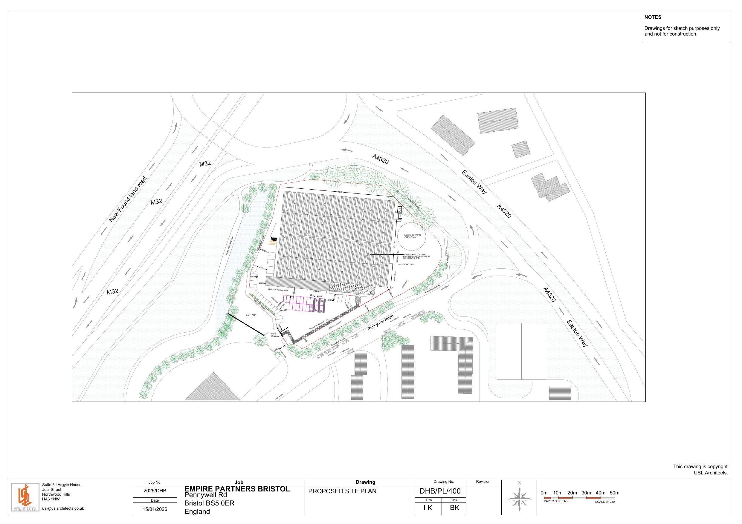 External alterations to the existing industrial building, including recladding of elevations, replacement of the roof with a thermally efficient composite cladding system incorporating rooflights and roof-mounted photovoltaic panels, closure of existing loading bay openings and office windows, erection of a small open-sided ancillary canopy, and associated reconfiguration of on-site car parking and servicing areas. No change of use and no new vehicular access.