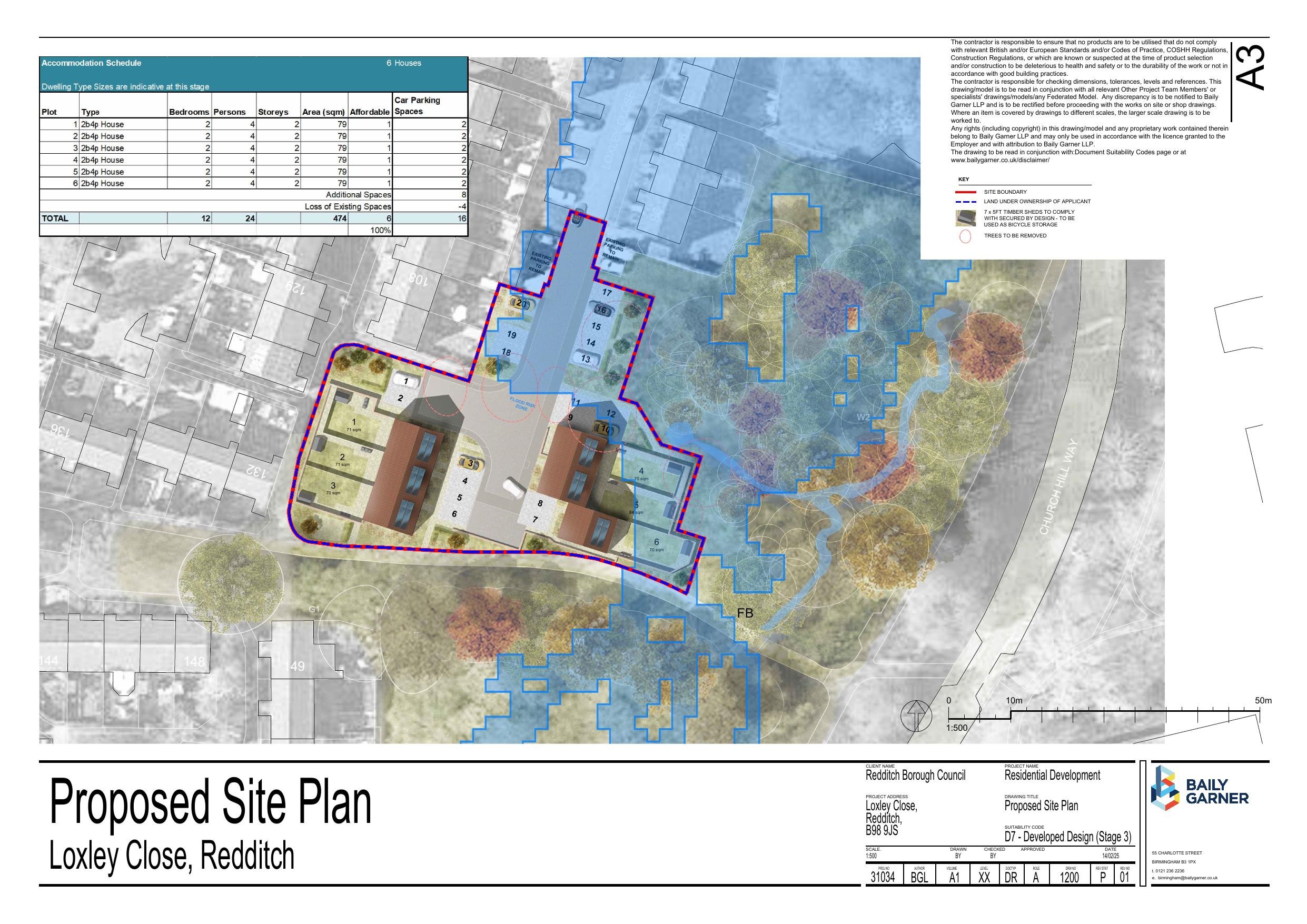 Proposed development of six houses with associated parking.