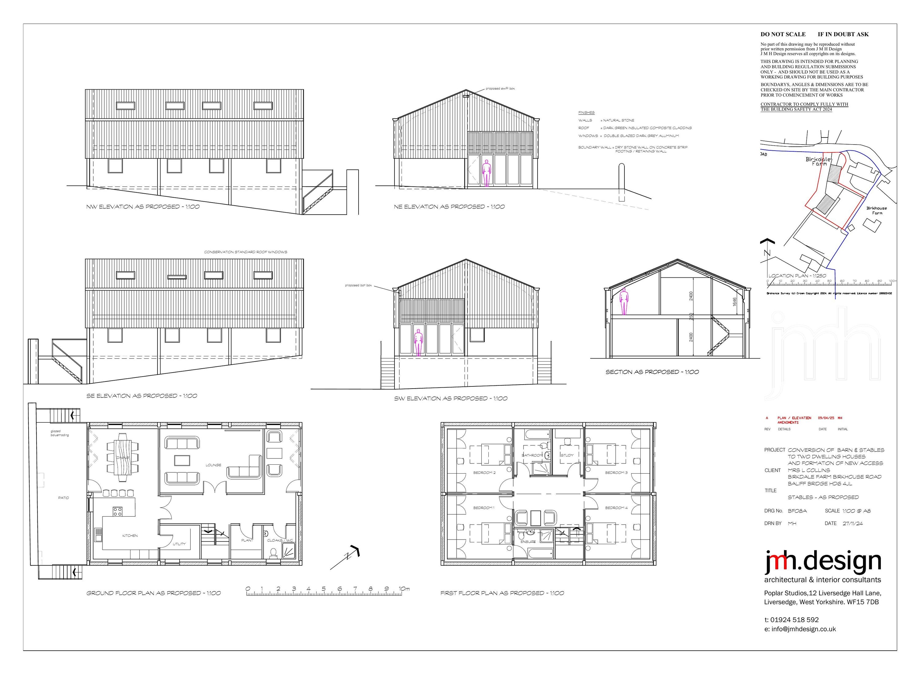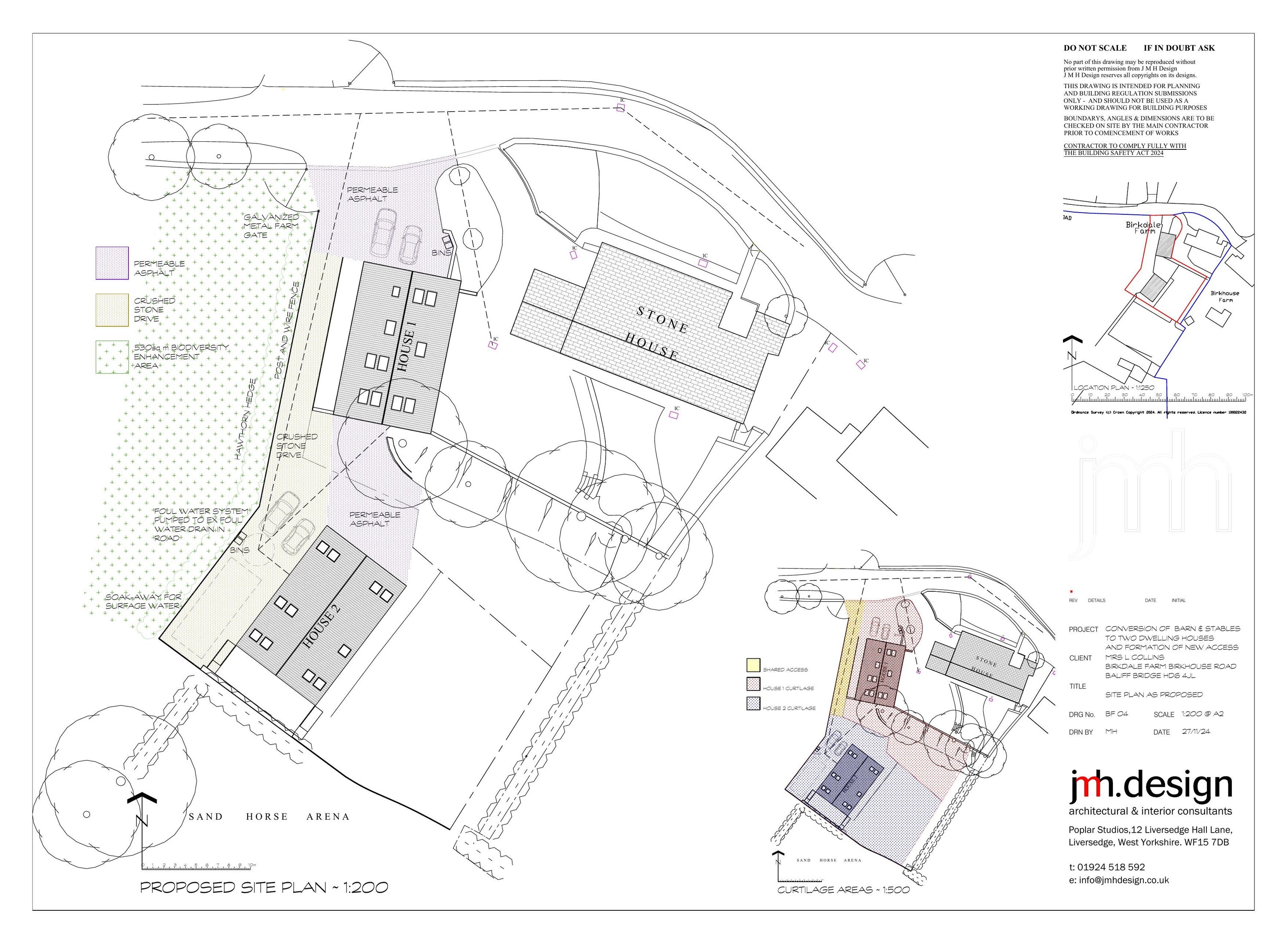Conversion of barn and stables to two dwelling, formation of a new access