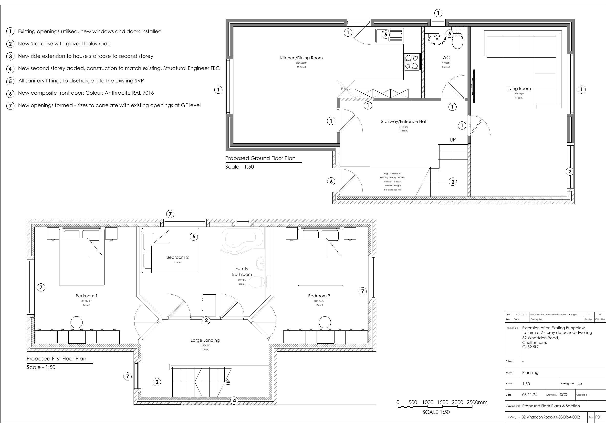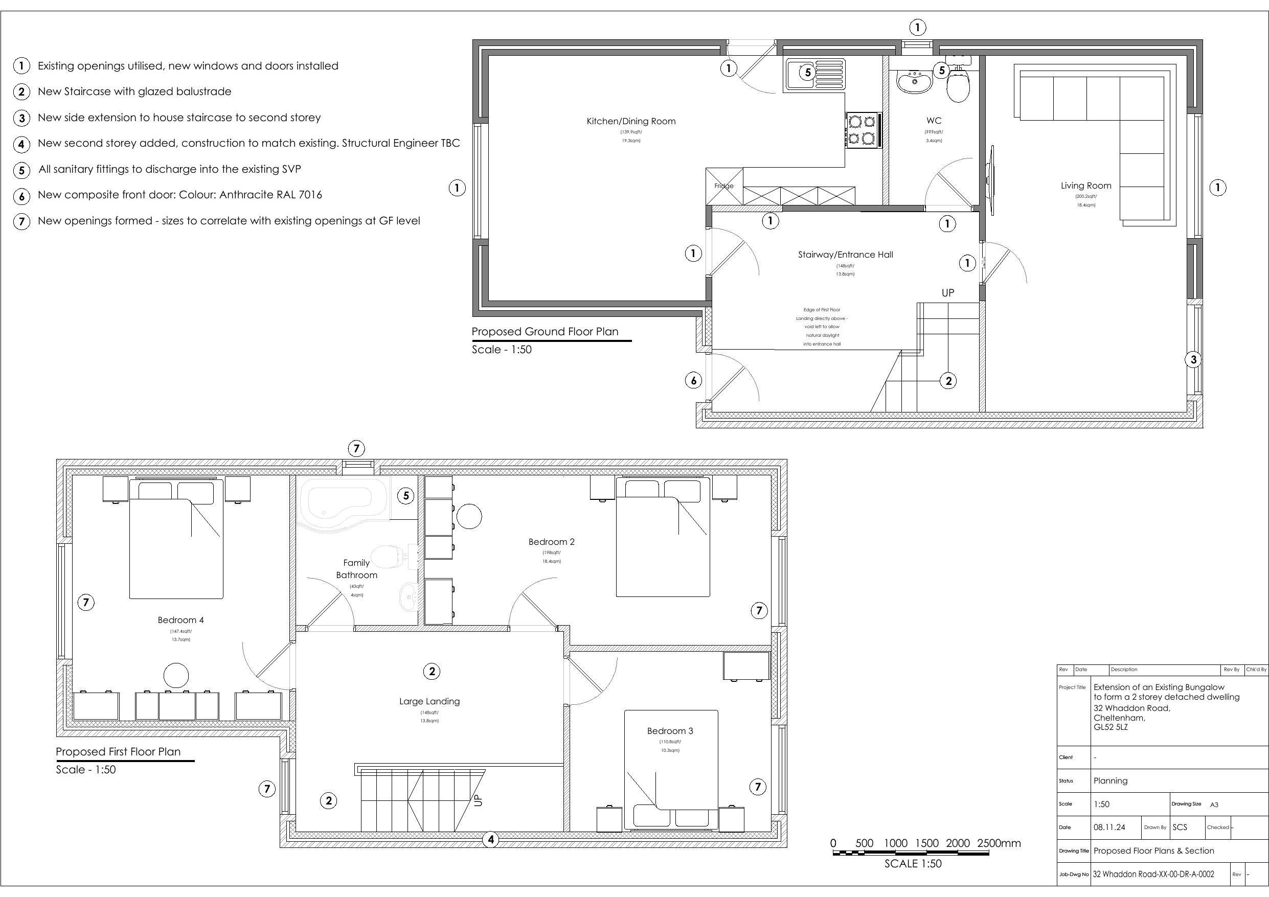 Alterations and extension to convert existing bungalow into a two storey dwelling.