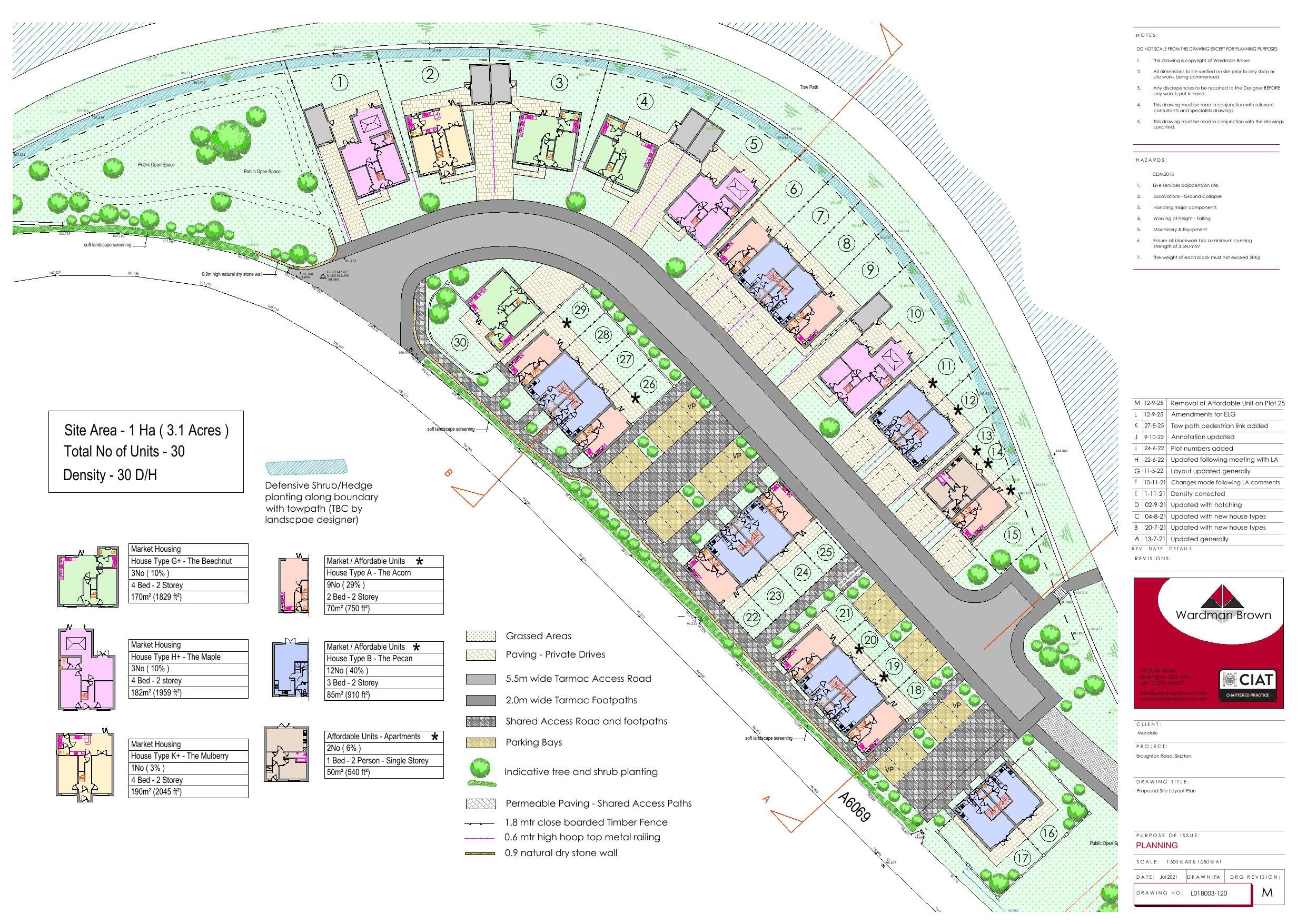 Construction of 30 dwellings with associated landscaping and open space.