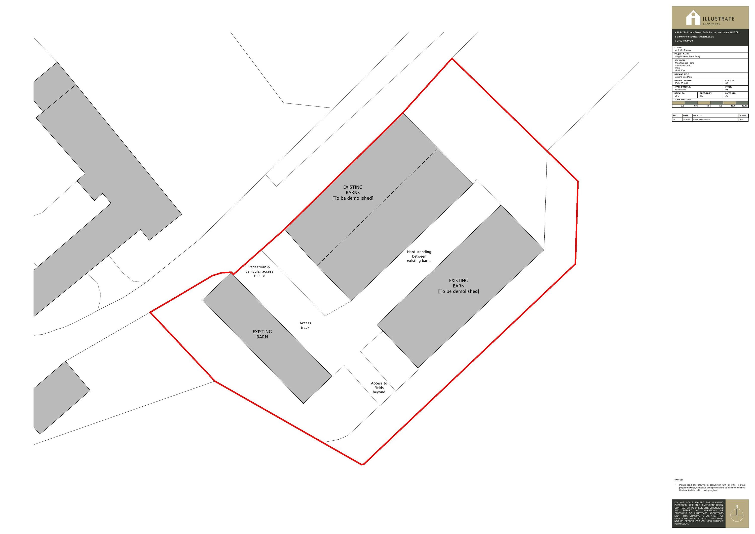 Demolish two barns; construct new self-build dwelling with store and garage.