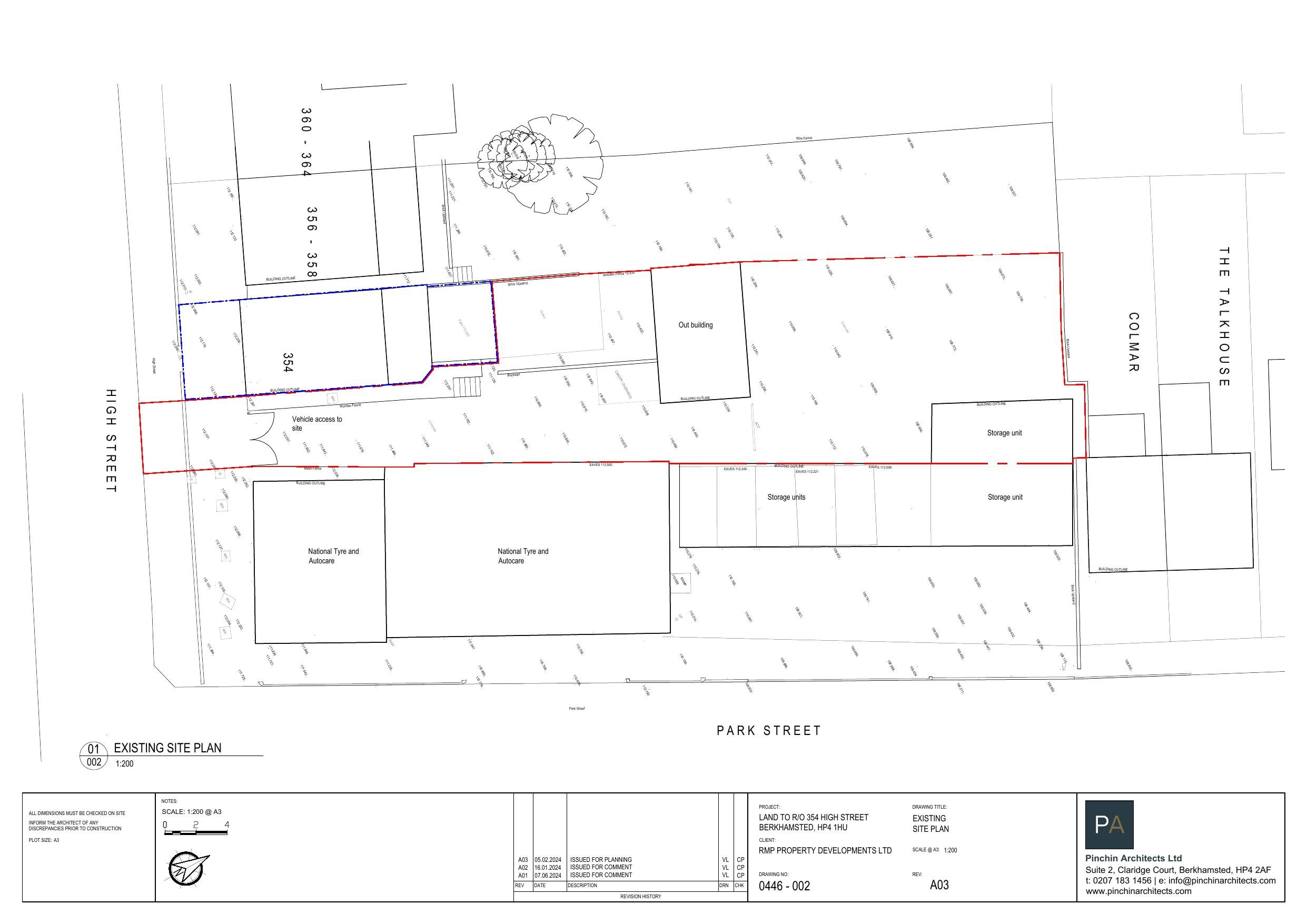 Existing and proposed park street long elevation