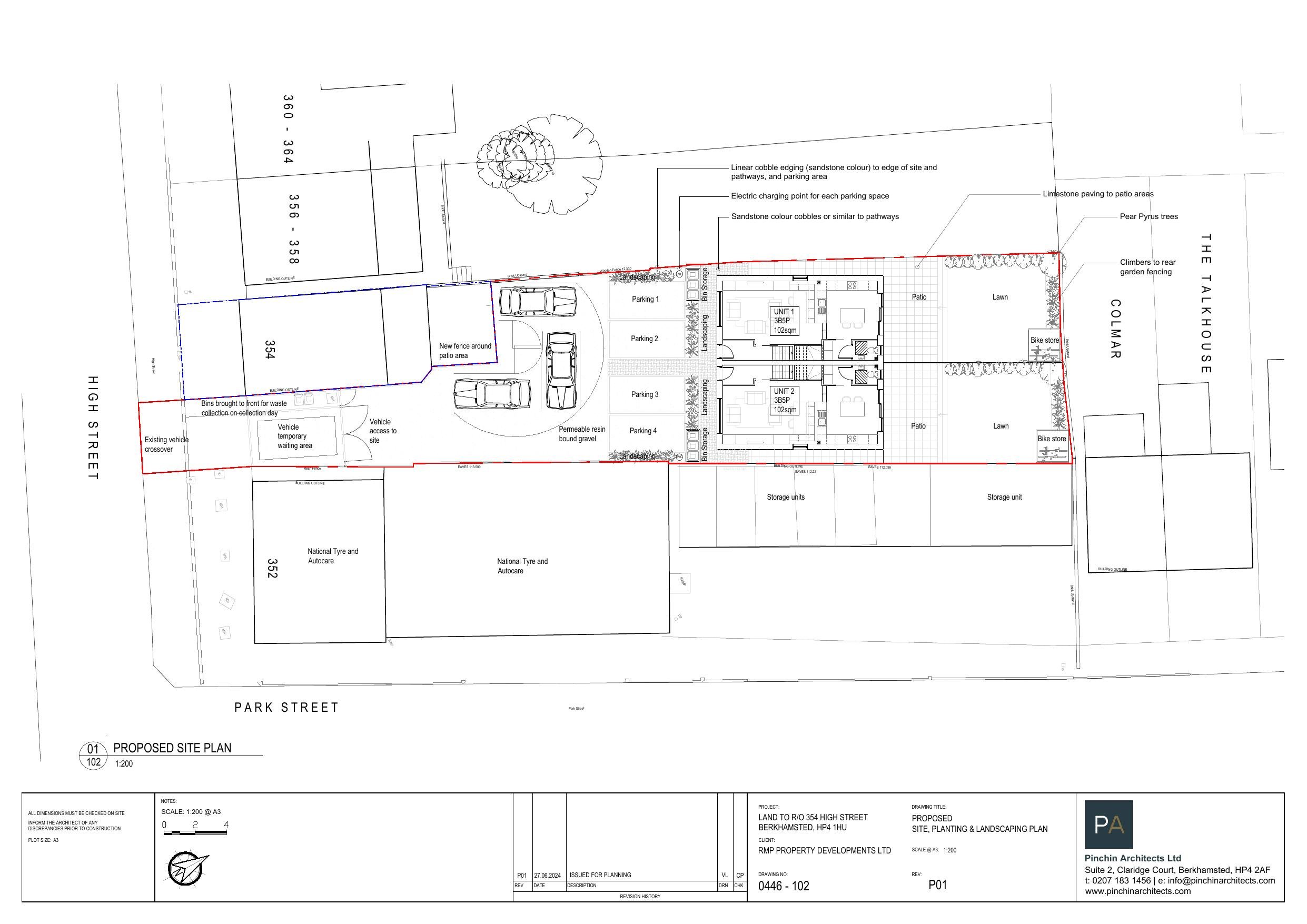 Two three-bedroom dwellings to rear of High Street with parking and landscaping.