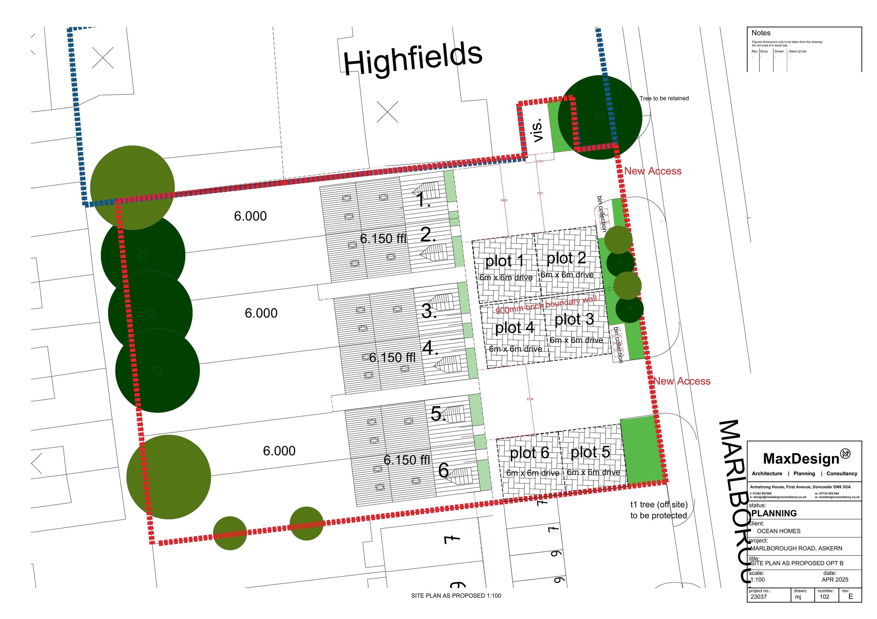 Demolition of existing buildings and construction of 6 x 3 bedroom dwellingsAmended Drawings