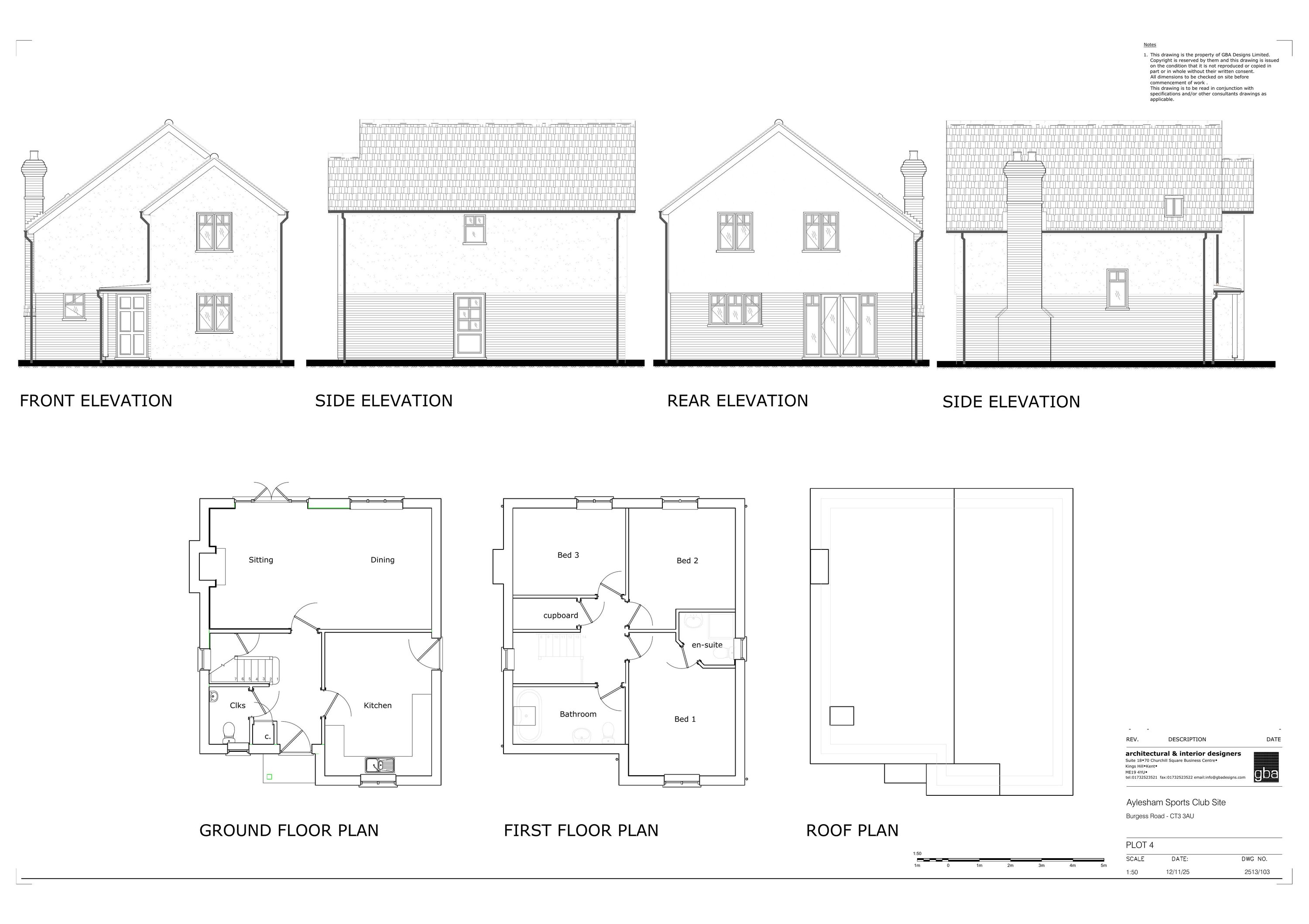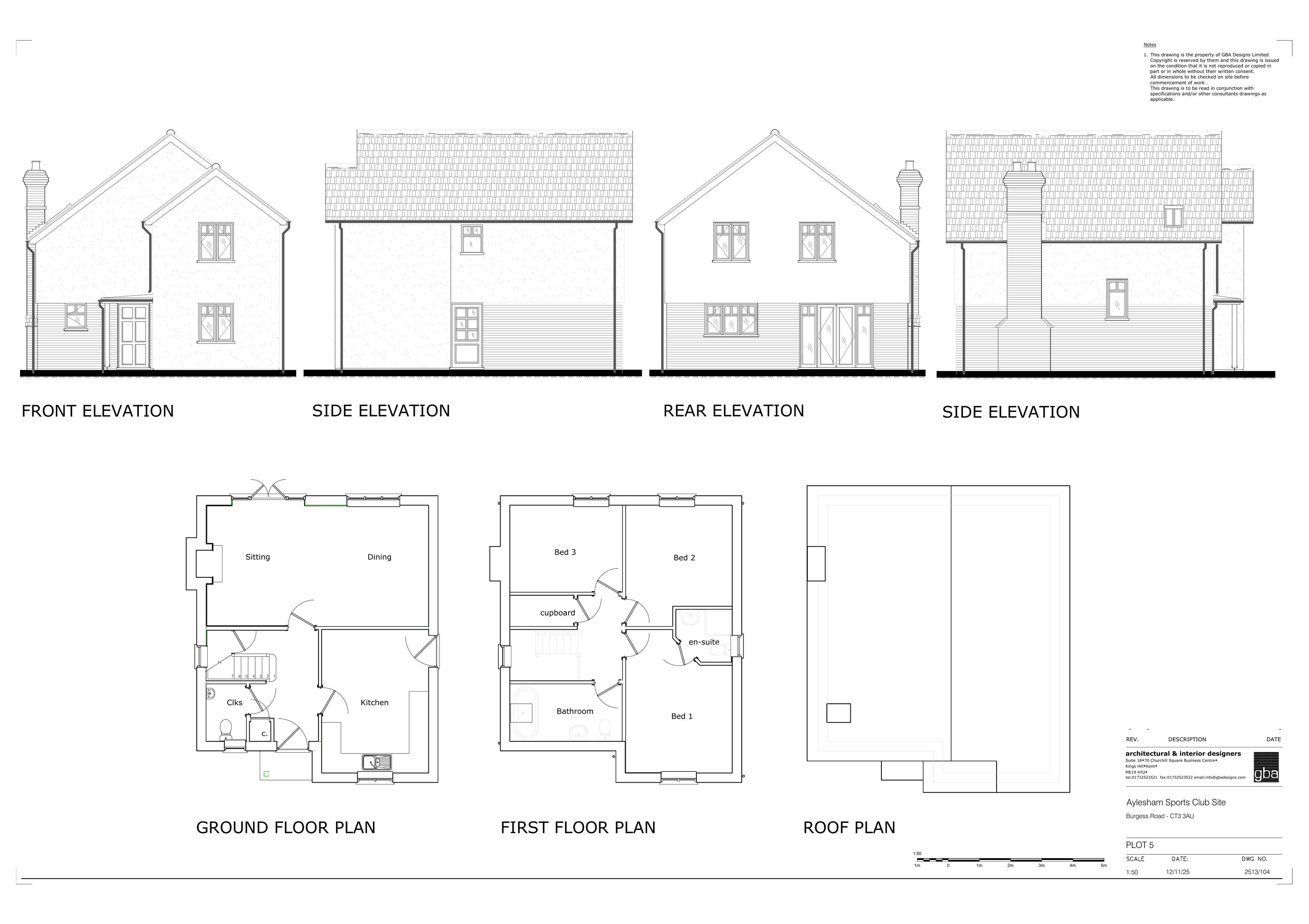 Construction of five dwellings with associated parking.