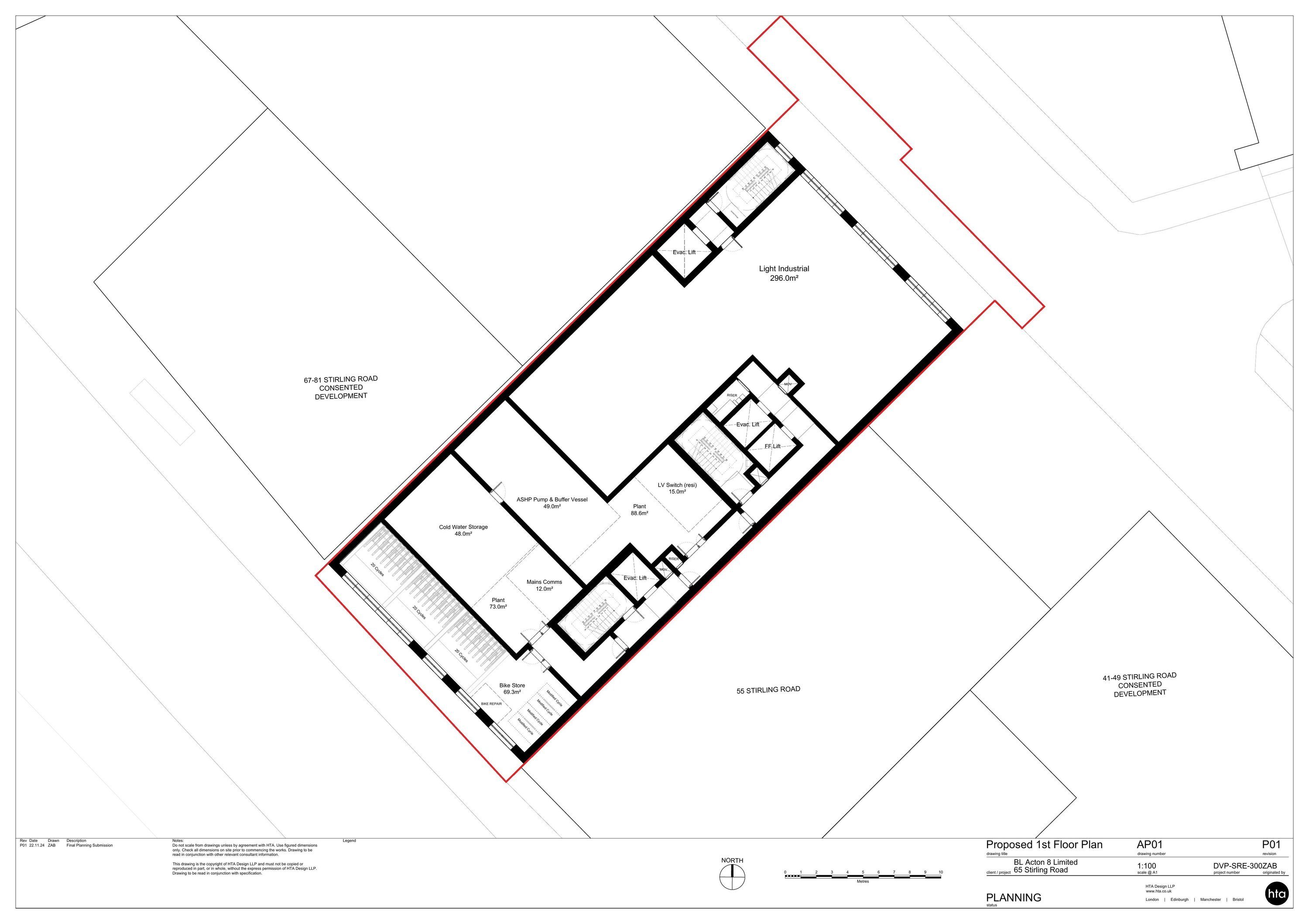 Demolition of existing building and construction of an industrial-led mixed used development comprising circa 696sqm commercial floorspace at ground and first floor and 49no. residential units (Class C3) on upper floors (up to 12 storeys) with associated landscaping, parking and servicing, cycle and refuse storage