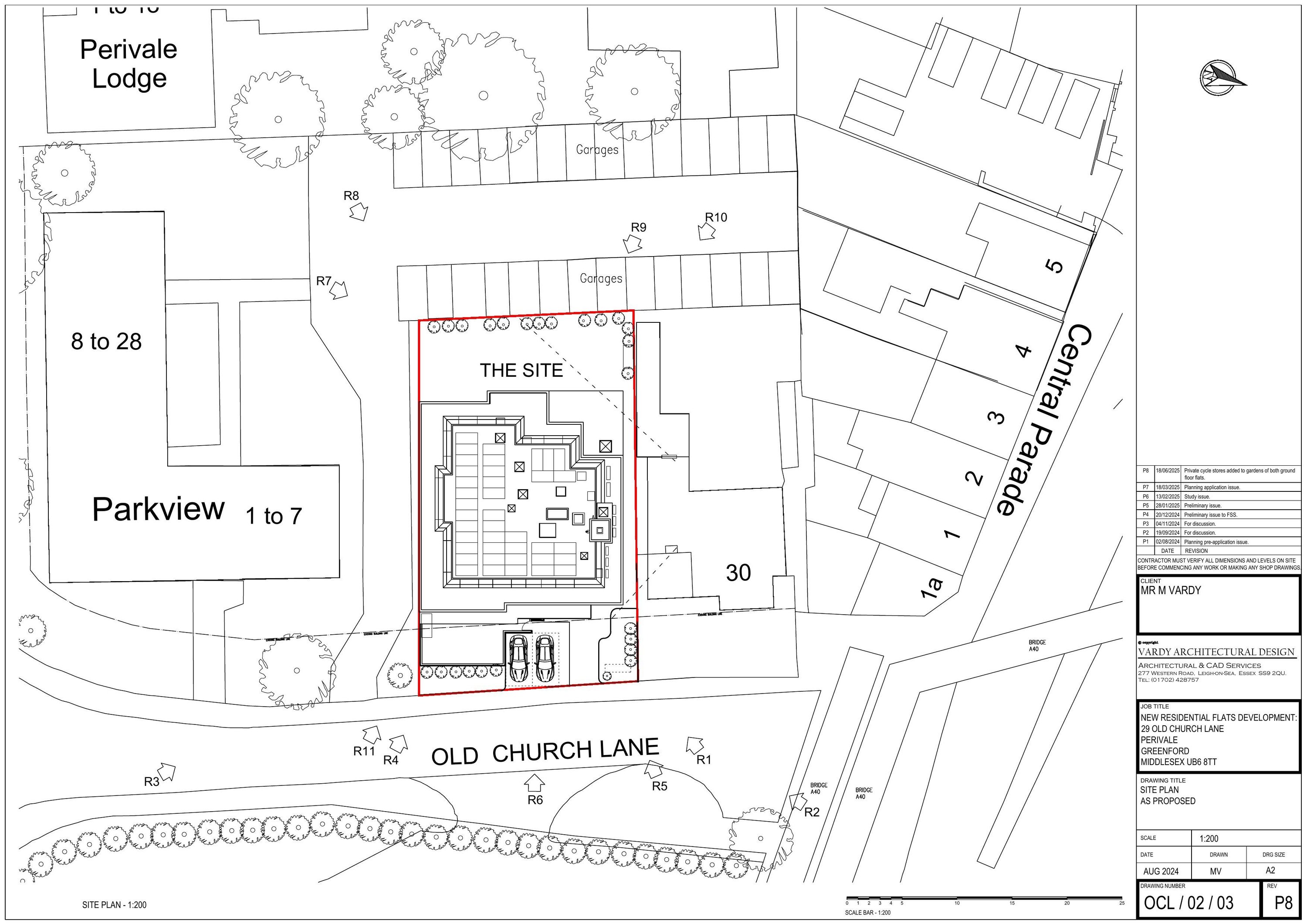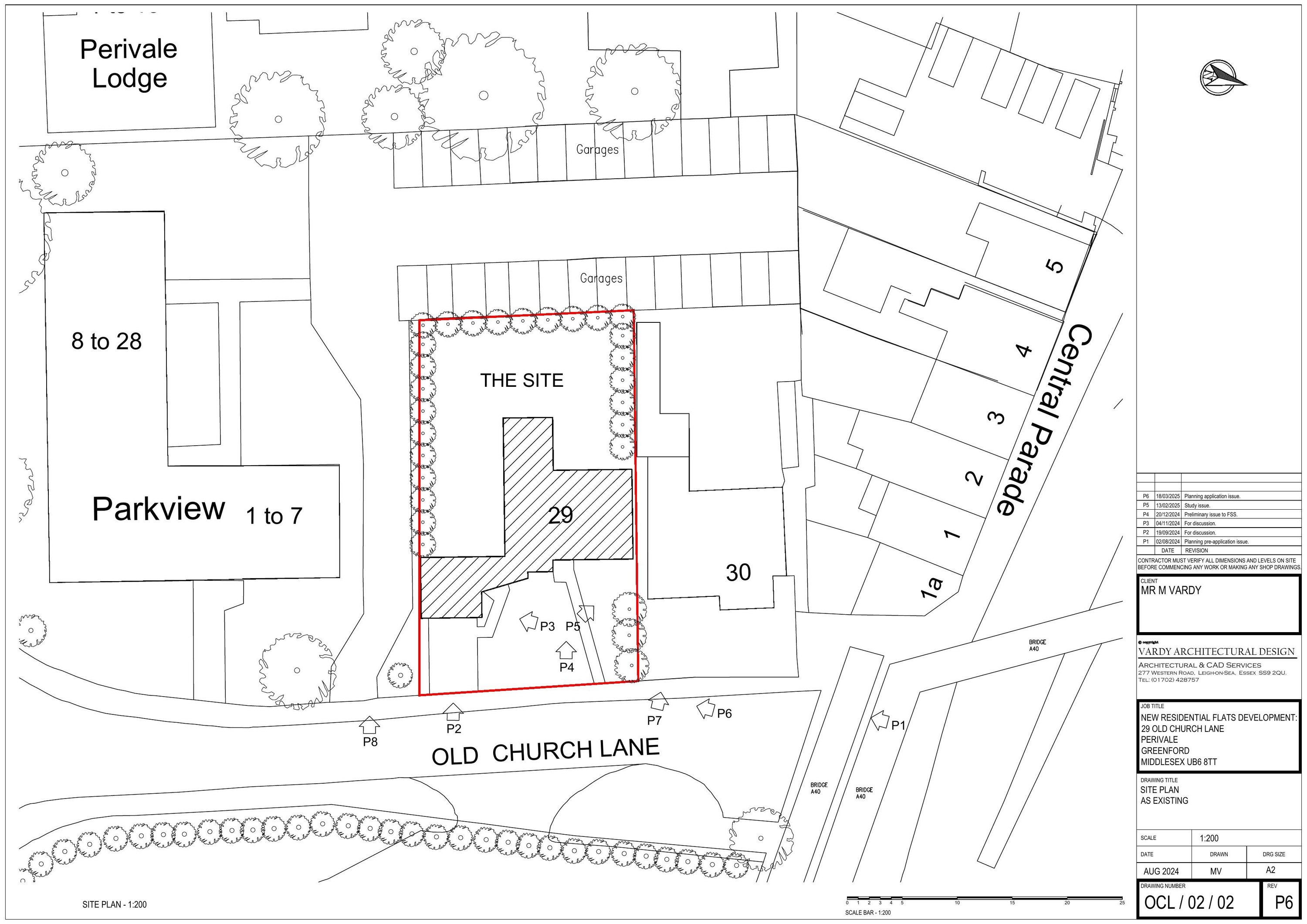 Erect five-storey block of nine flats replacing bungalow.