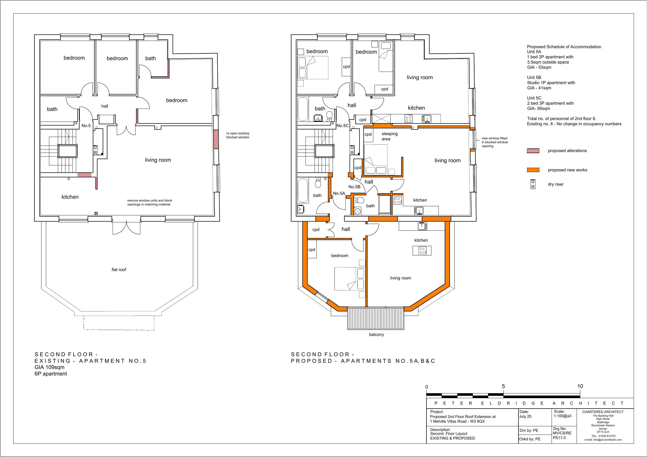 Second floor side extension over existing first floor flat roof, subdivision of a residential dwelling (Flat 5) into three residential dwellings, with balconies and associated alterations (REVISED PLANS)