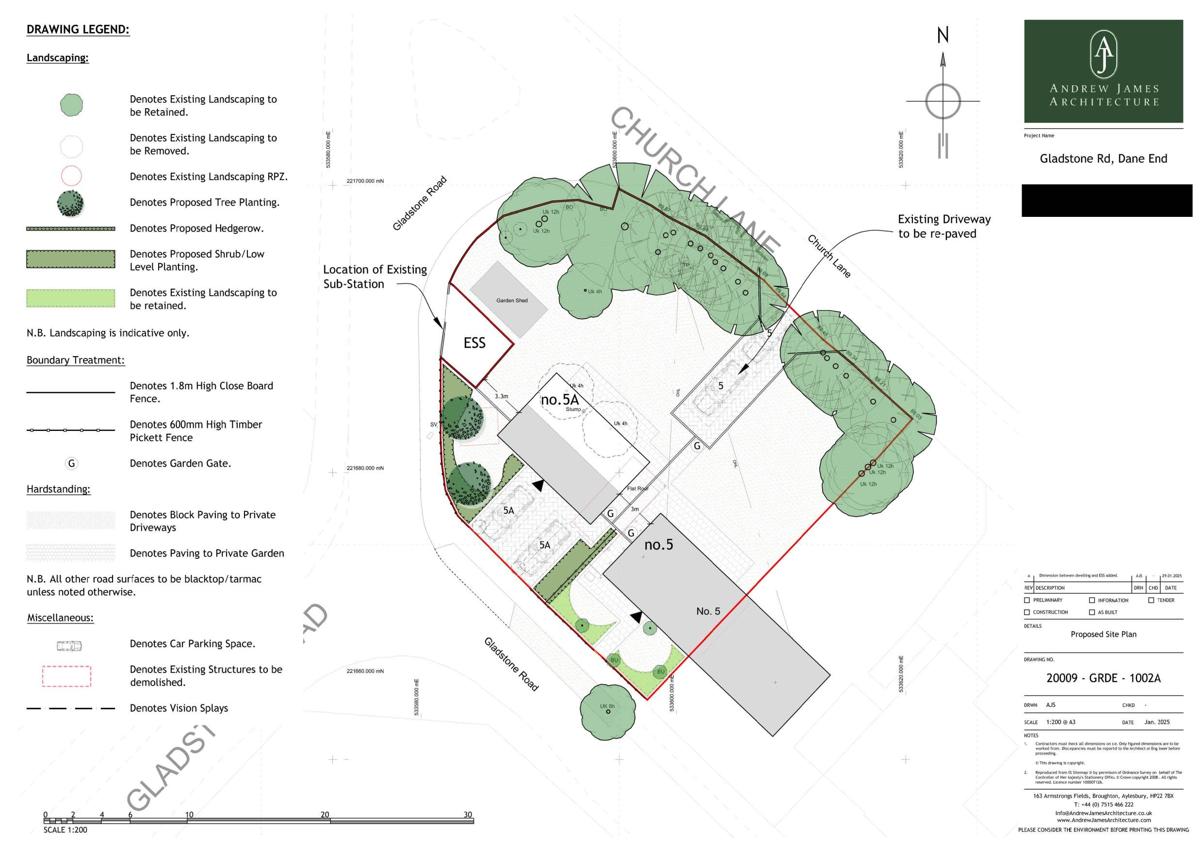 Demolish garage and greenhouse and construct one new dwelling with parking and access.