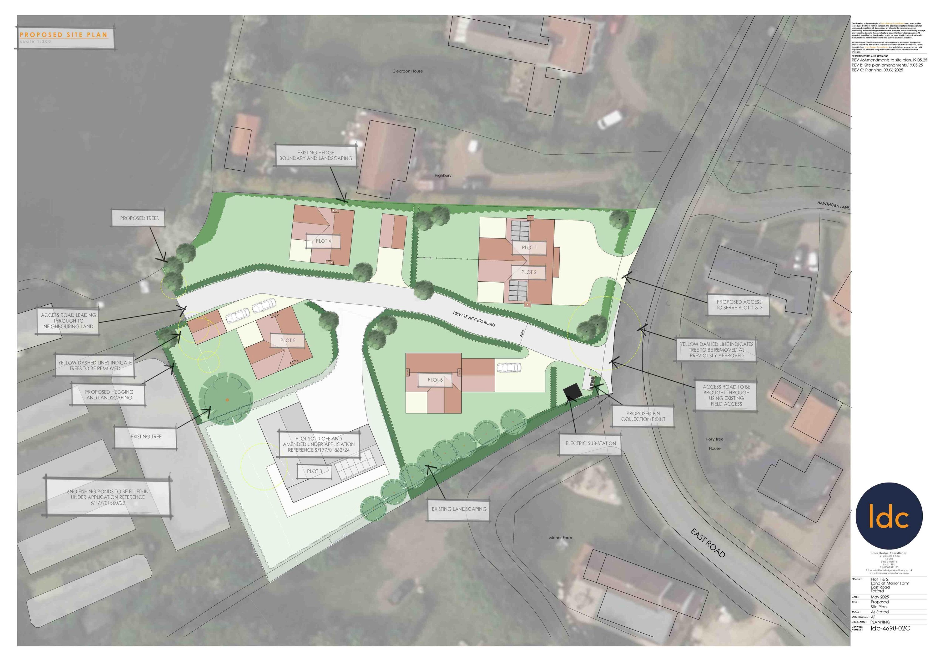 Hybrid: full planning for 2 houses and outline for 3 houses (access considered).