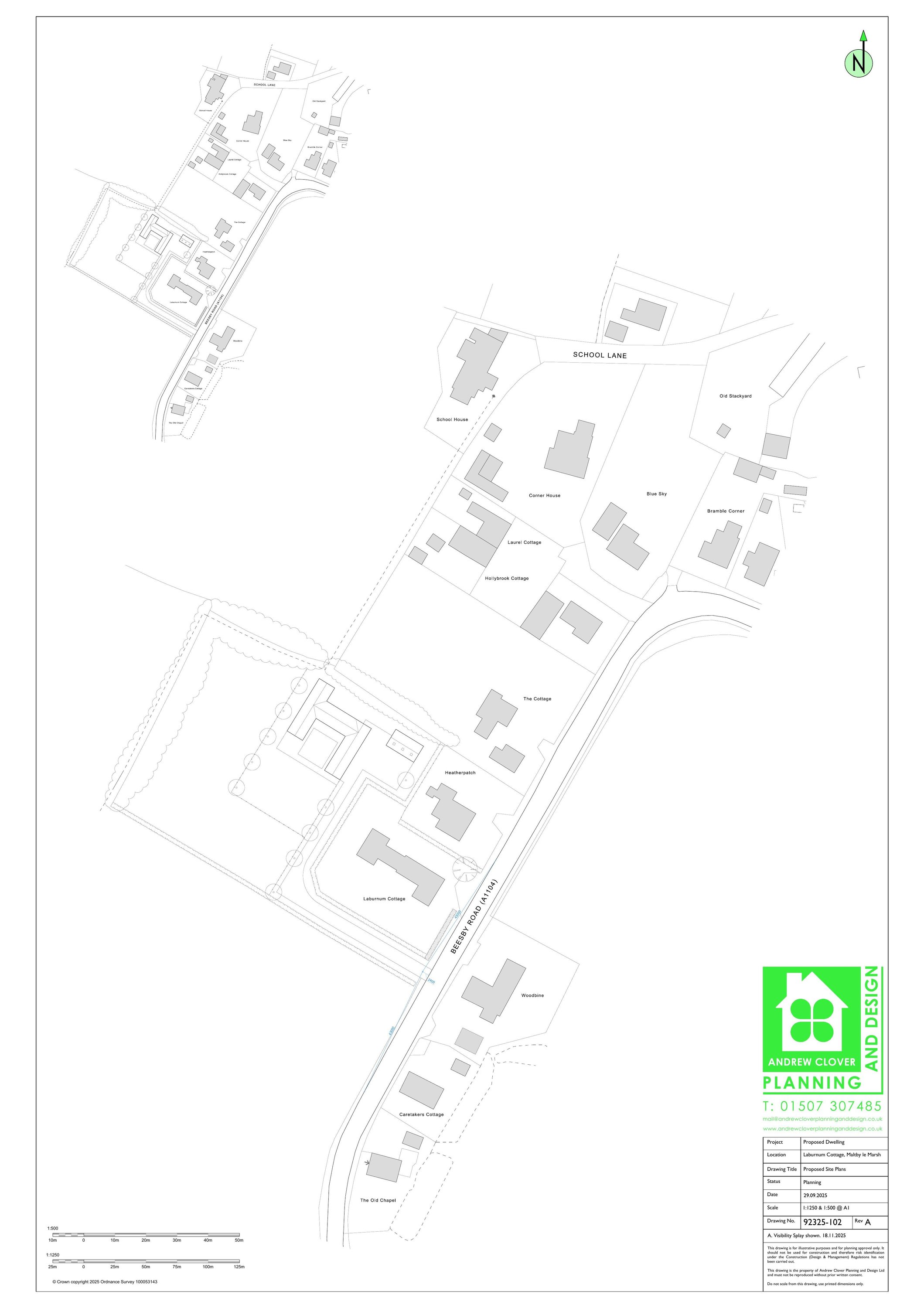 Planning Permission - Erection of a dwelling with detached double garage and stores and construction of a vehicular access.