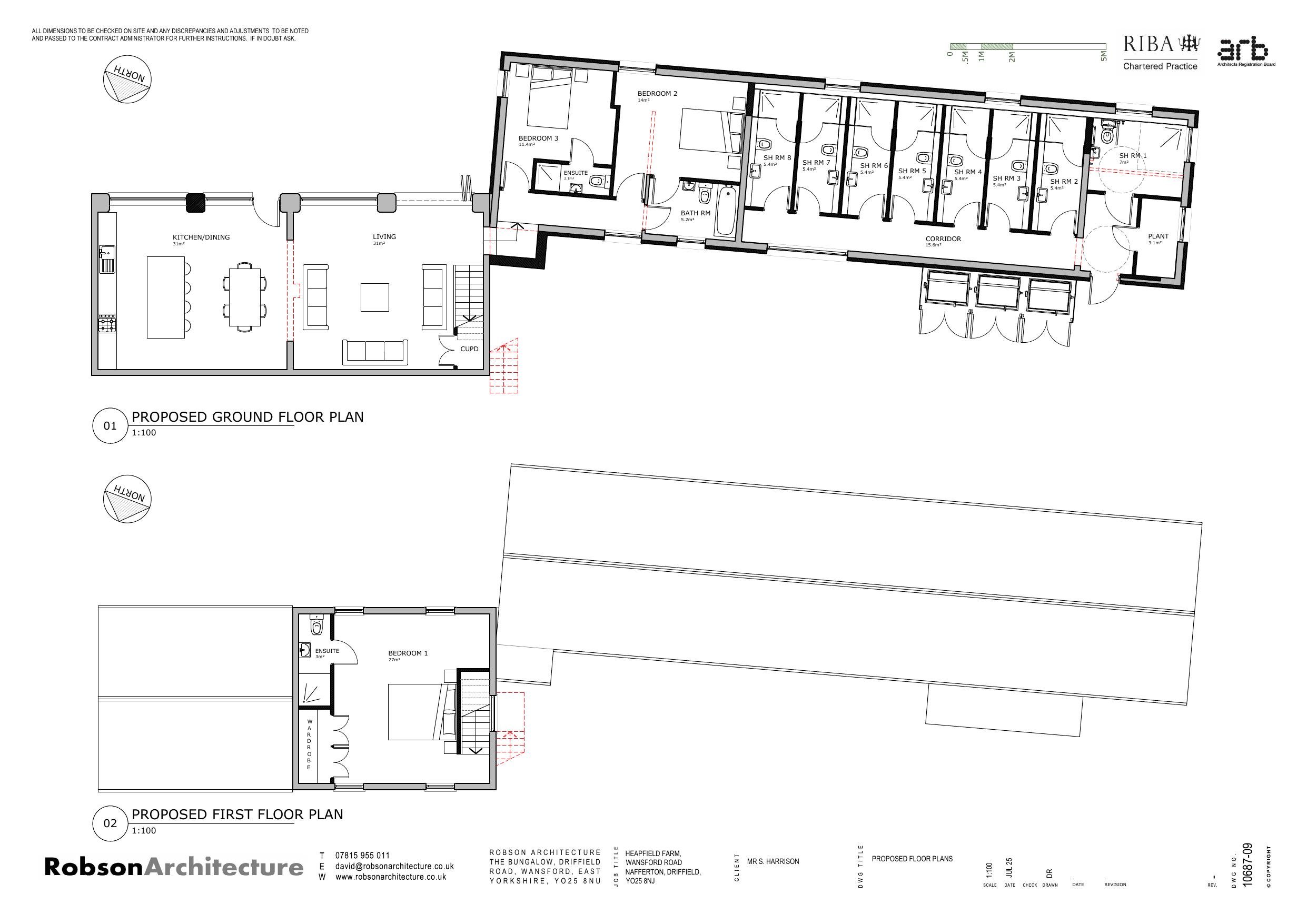 Change of use of 2 agricultural buildings to form a dwelling and shower block with alterations including erection of a link extension and bin store, and change of use of land for siting of 8 caravan pitches with associated landscaping, fencing and infrastructure