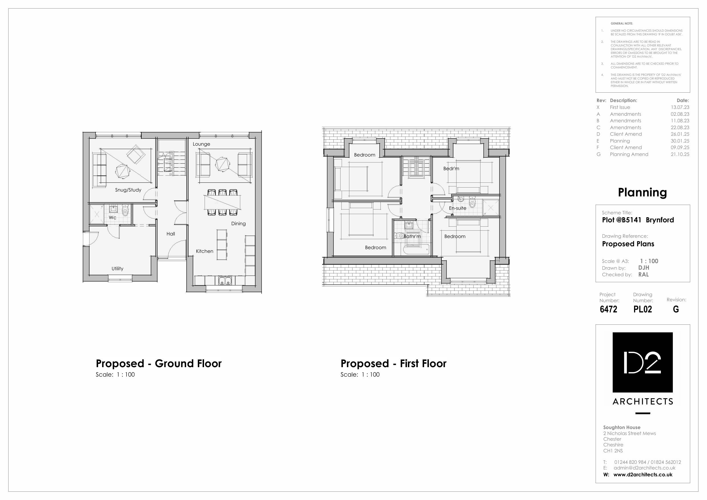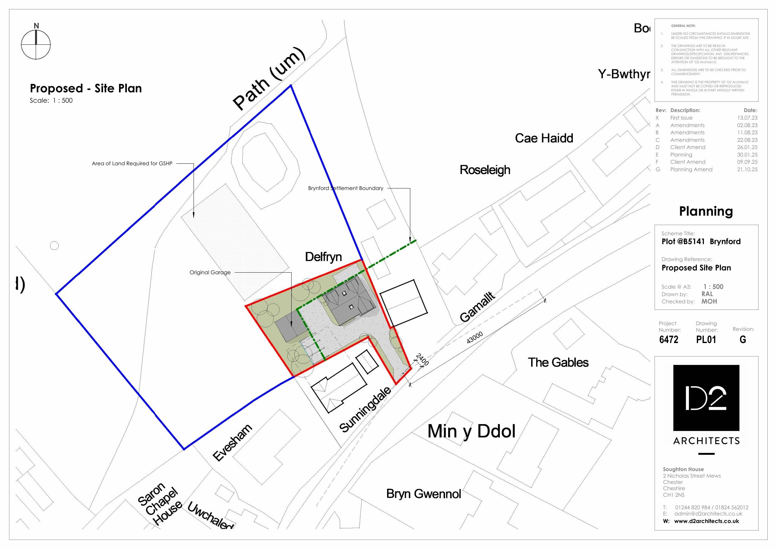 SUPERSEDED 10.11.25 - AMENDED 28.10.25 - Proposed Front & Side Elevations - Dwg PL03 - Rev G