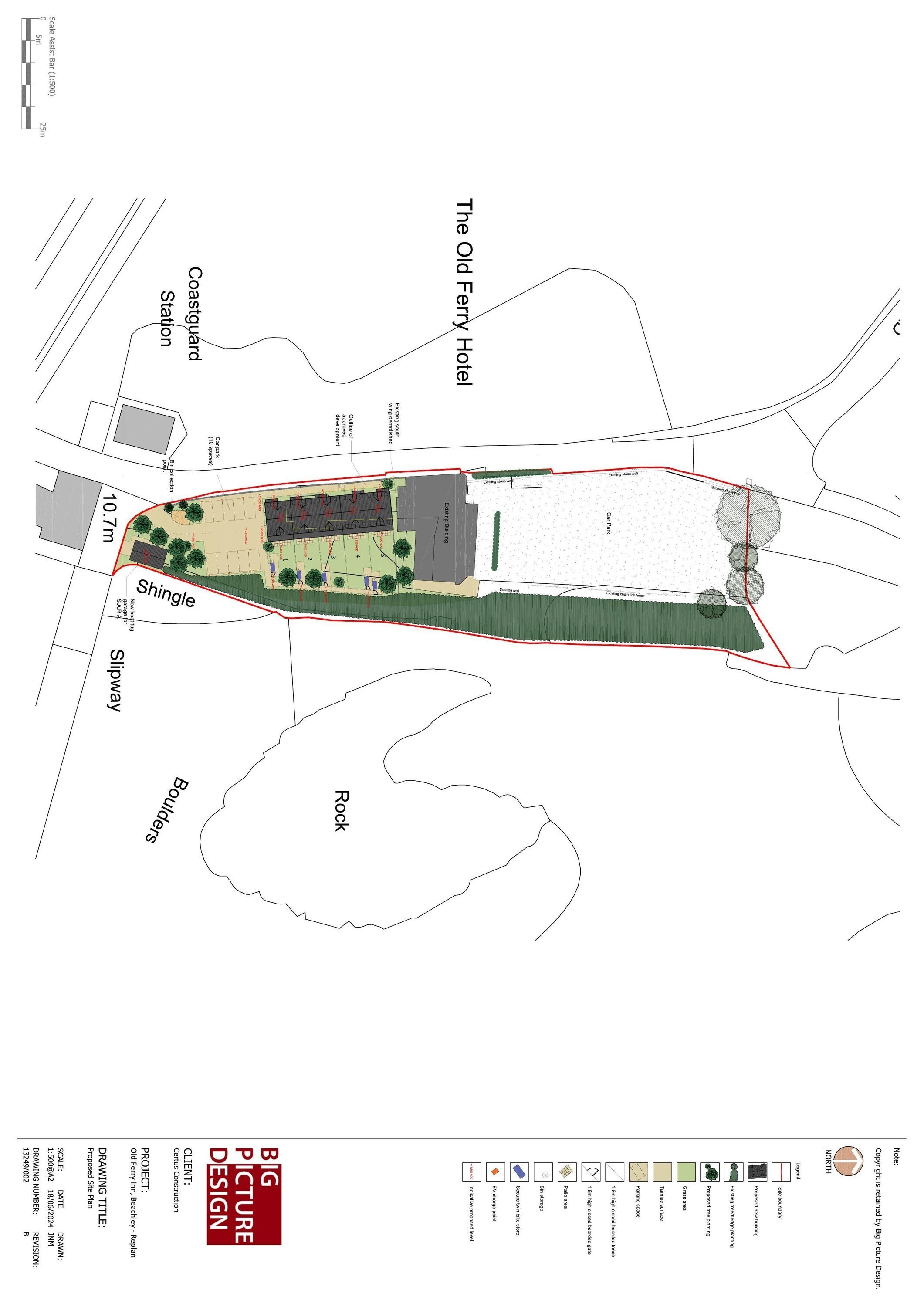 Erection of 5 no. dwellings with associated parking and landscaping, partial demolition of rear extension to main building, construction of lifeboat tug storage shed and associated works