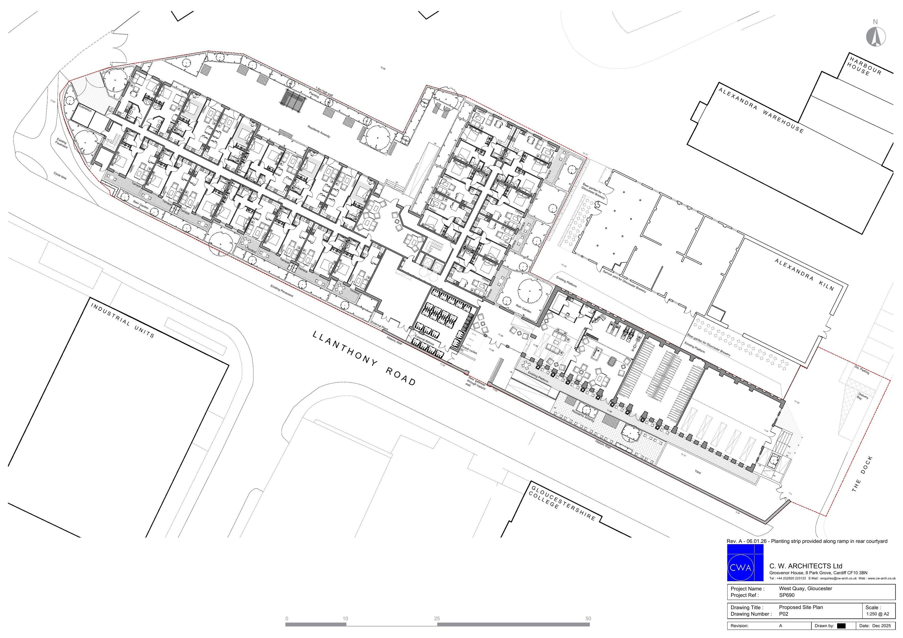 Residential development at West Quay to provide 141 no. residential properties (use class C3) incorporating new commercial unit (E use class) through the conversion of the existing warehouse building and construction of new apartment blocks (6 storeys) following the demolition of existing structures, together with the associated landscaping and amenity spaces, and closure and alteration of vehicular accesses.
