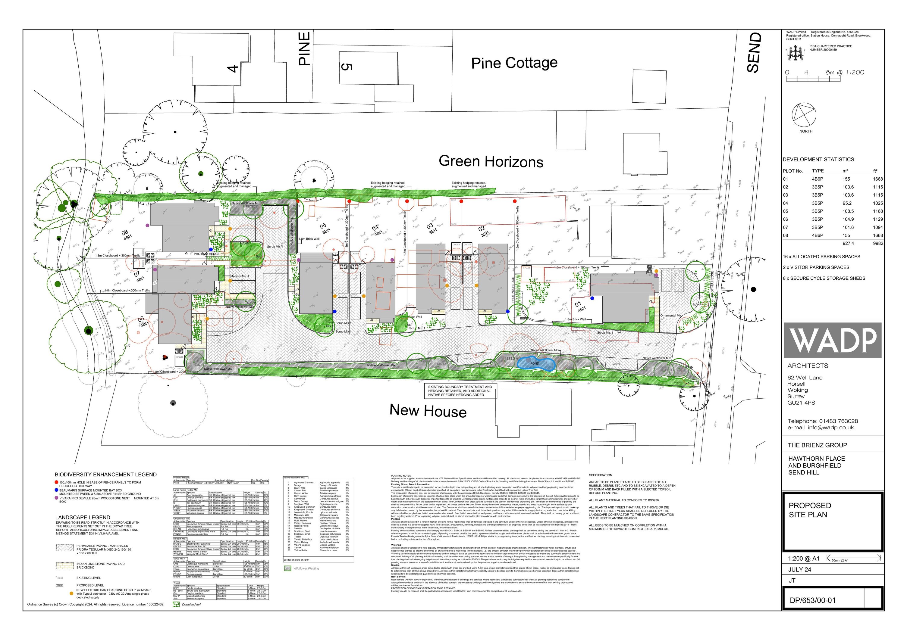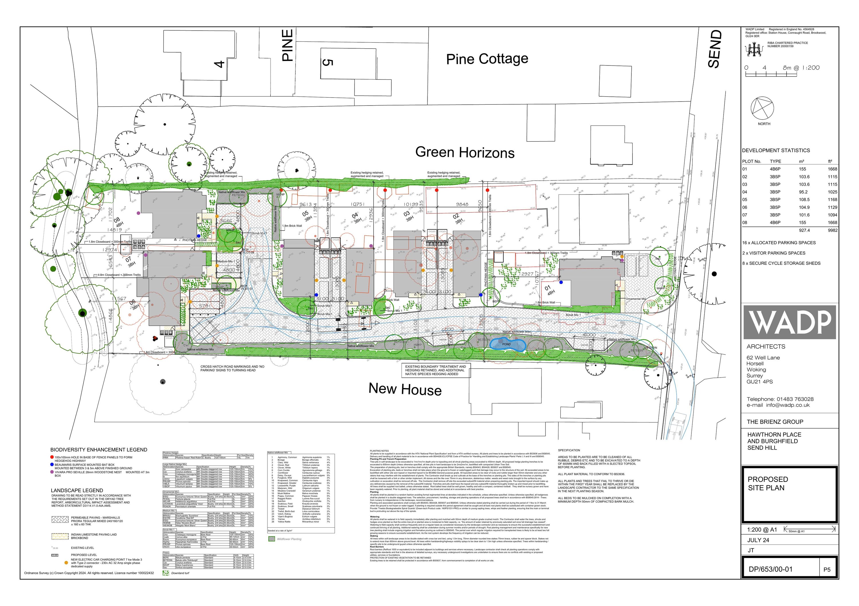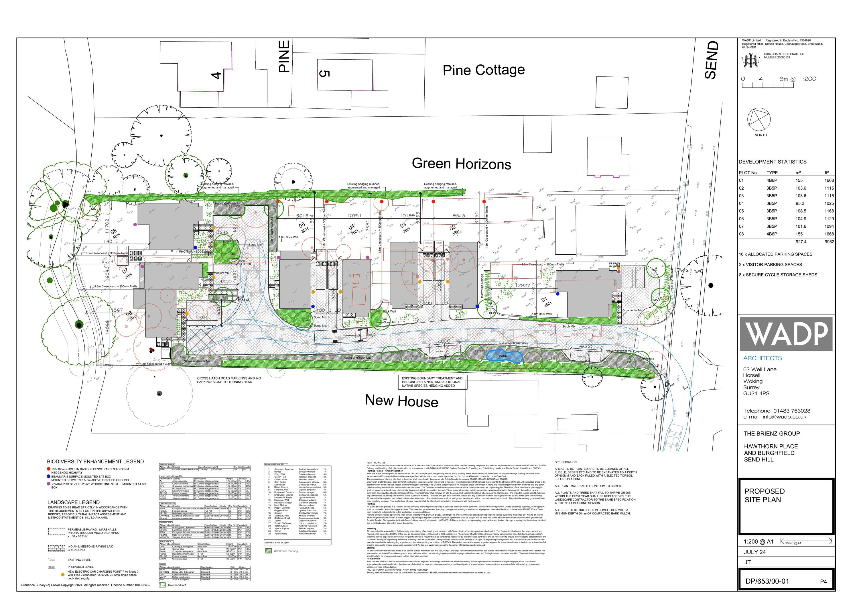 Erection of 8 new three and four bedroom family dwellings with associated hard and soft landscaping and formation of new access to Send Hill, following demolition of Burghfield and assorted garden out buildings.