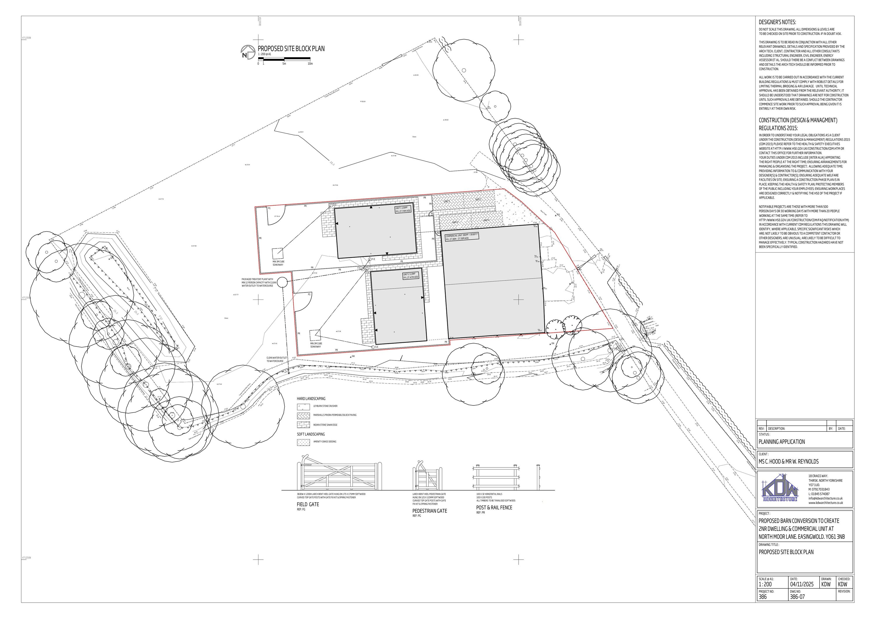 Proposed barn conversion to create 2no two-bedroom single-storey dwellings and 1no commercial unit for use by the occupiers of the proposed dwellings