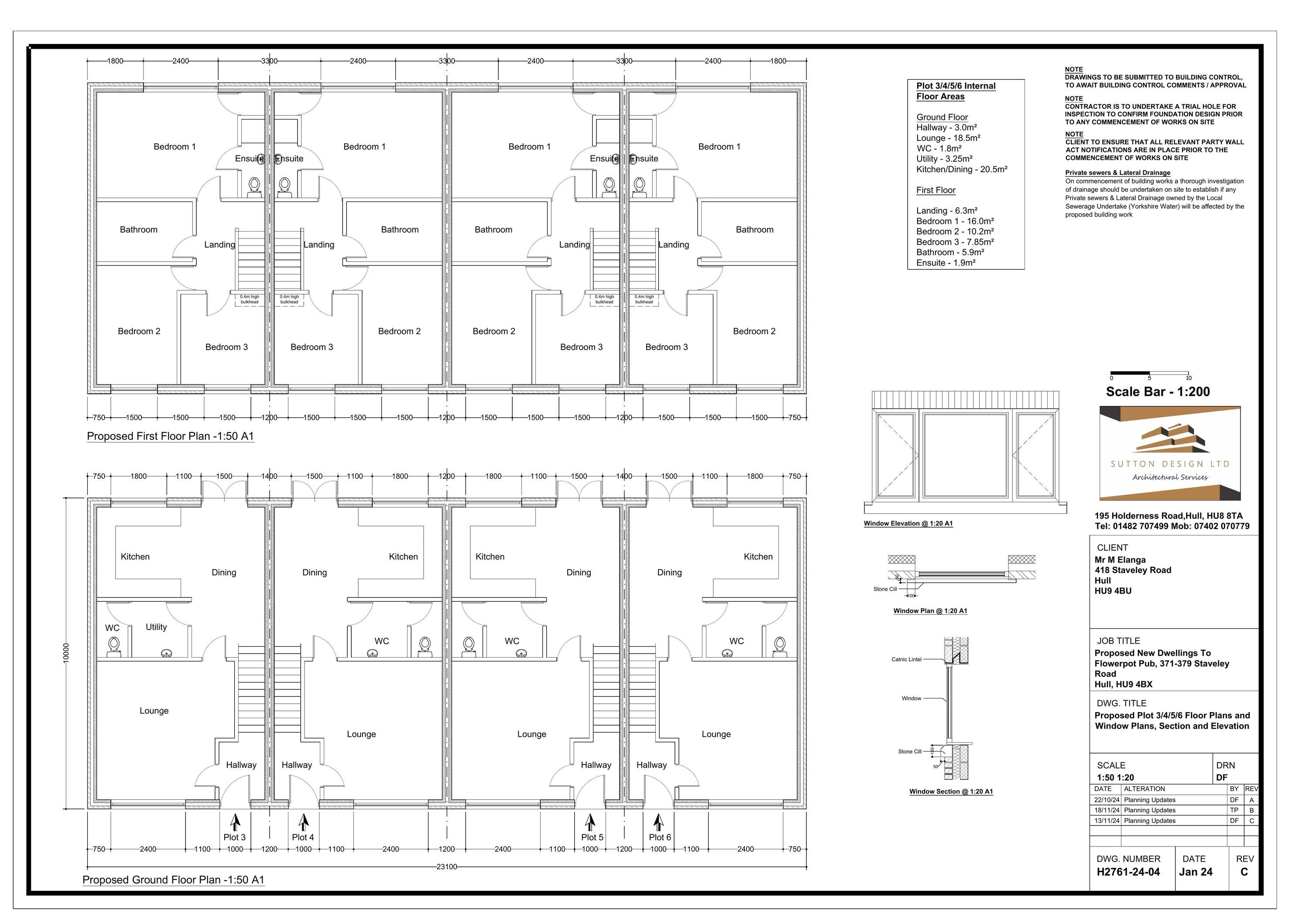 PLOTS 3 4 5 6 FLOOR PLANS AND WINDOW PLANS SECTION AND ELEVATION