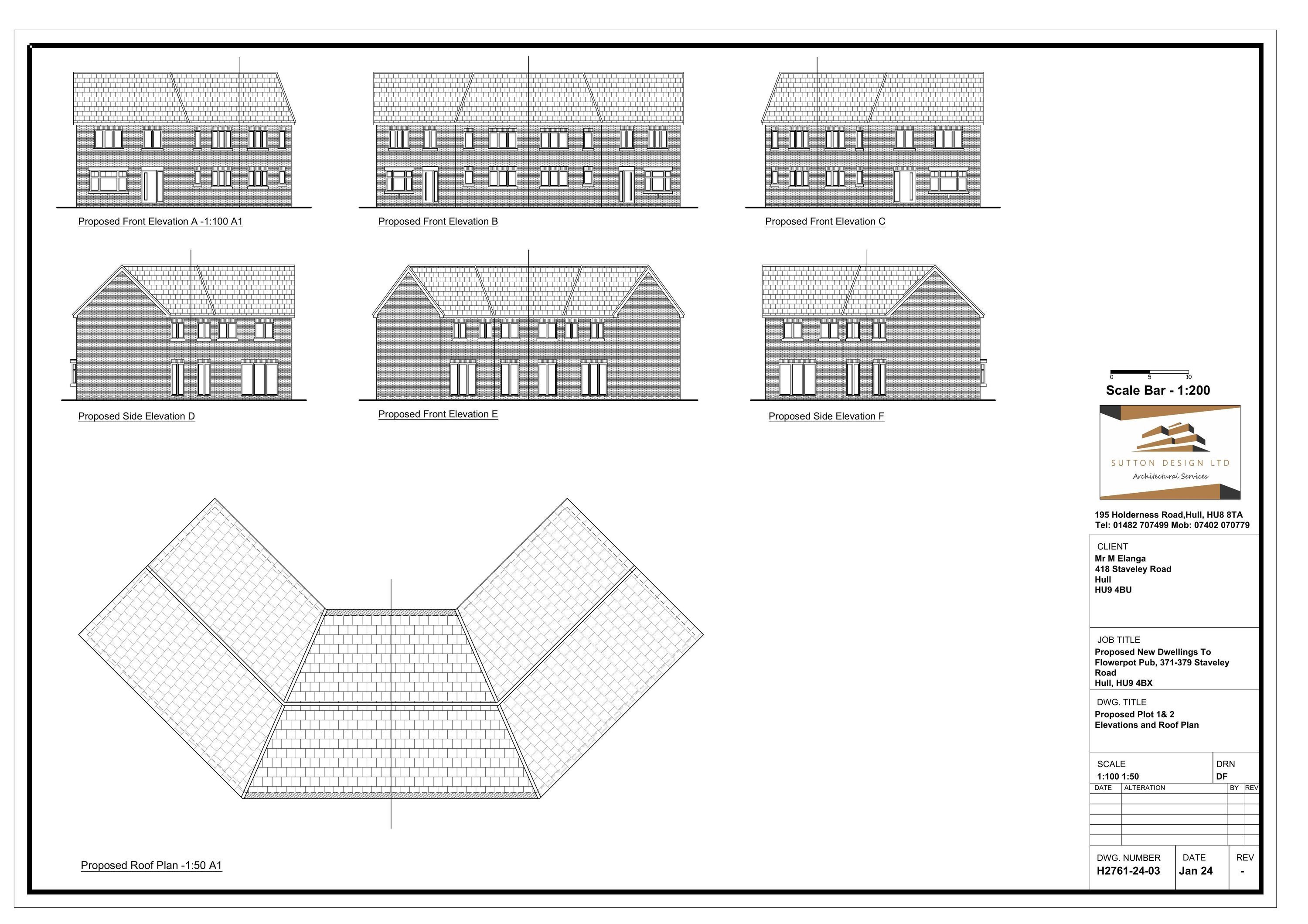 PROPOSED PLOT 1 & 2 ELEVATIONS AND ROOF PLAN