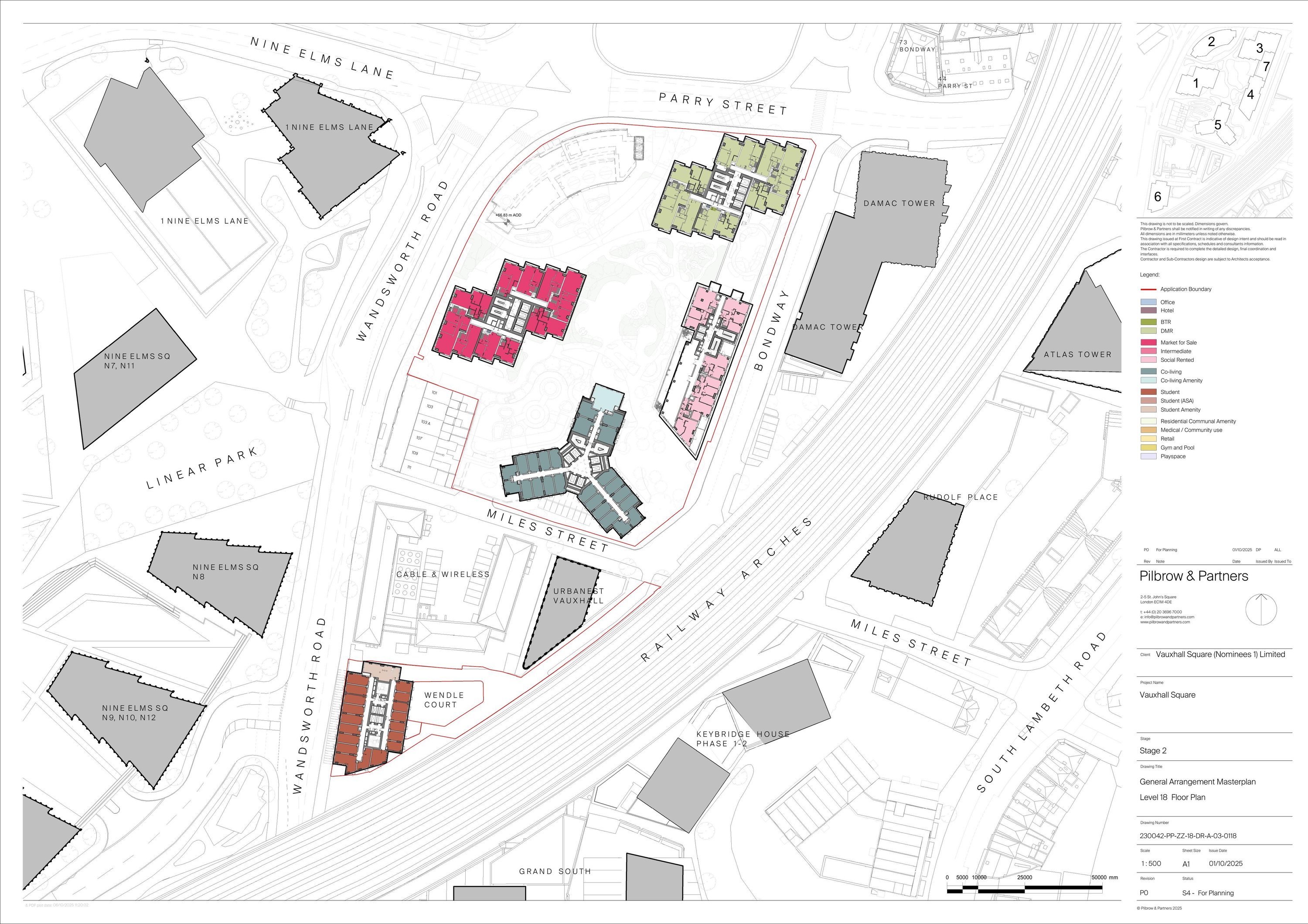 Phased redevelopment of the site including demolition of all existing buildings and structures to erect up to 7 buildings ranging from three to 69 storeys plus basements for a range of land uses comprising residential (Class C3), purpose built shared living (Sui Generis), purpose built student accommodation (Sui Generis), flexible town centre uses/commercial (Class E(a), (b), (d), (e)), community/health uses (Class F2/E(e)), office (Class E(g)) and/or hotel (Class C1), cinema (Sui Generis), soft and hard landscaping, play space, pedestrian and vehicular access, cycle parking, car parking and all other works associated with the development. Information for the purpose of consultation (floorspace measured as Gross Internal Area): - Residential dwellings: 1,097 - Co-living: 1,164 units - Student accommodation: 699 units - Hotel: 11,409sqm - Office: 4,085sqm - Flexible retail: 3,968sqm - Cinema: 1,707sqm - Community/medical: 1,780sqm 30 DAY RE-CONSULTATION DUE TO: - Further information and evidence have been provided under Regulation 25 of the EIA Regulations, see cover letter from Trium dated 9 January 2026, including:- ES Volume 1, Chapter 11: Daylight, Sunlight, Overshadowing and Solar Glare and appendices; ES Volume 1, Chapter 16: Likely Significant Effects; and ES Non-Technical Summary. - Amendments and further information as set out in cover letter from DP9 dated 21 January 2026, including:- alterations to Plot 6 internal layout and minor external changes, update to flexible retail uses, and update to affordable student accommodation proposal; and assessment against Viewpoint KOV5a within Kennington Oval Vauxhall Neighbourhood Plan. Please note all previous comments will still be considered.