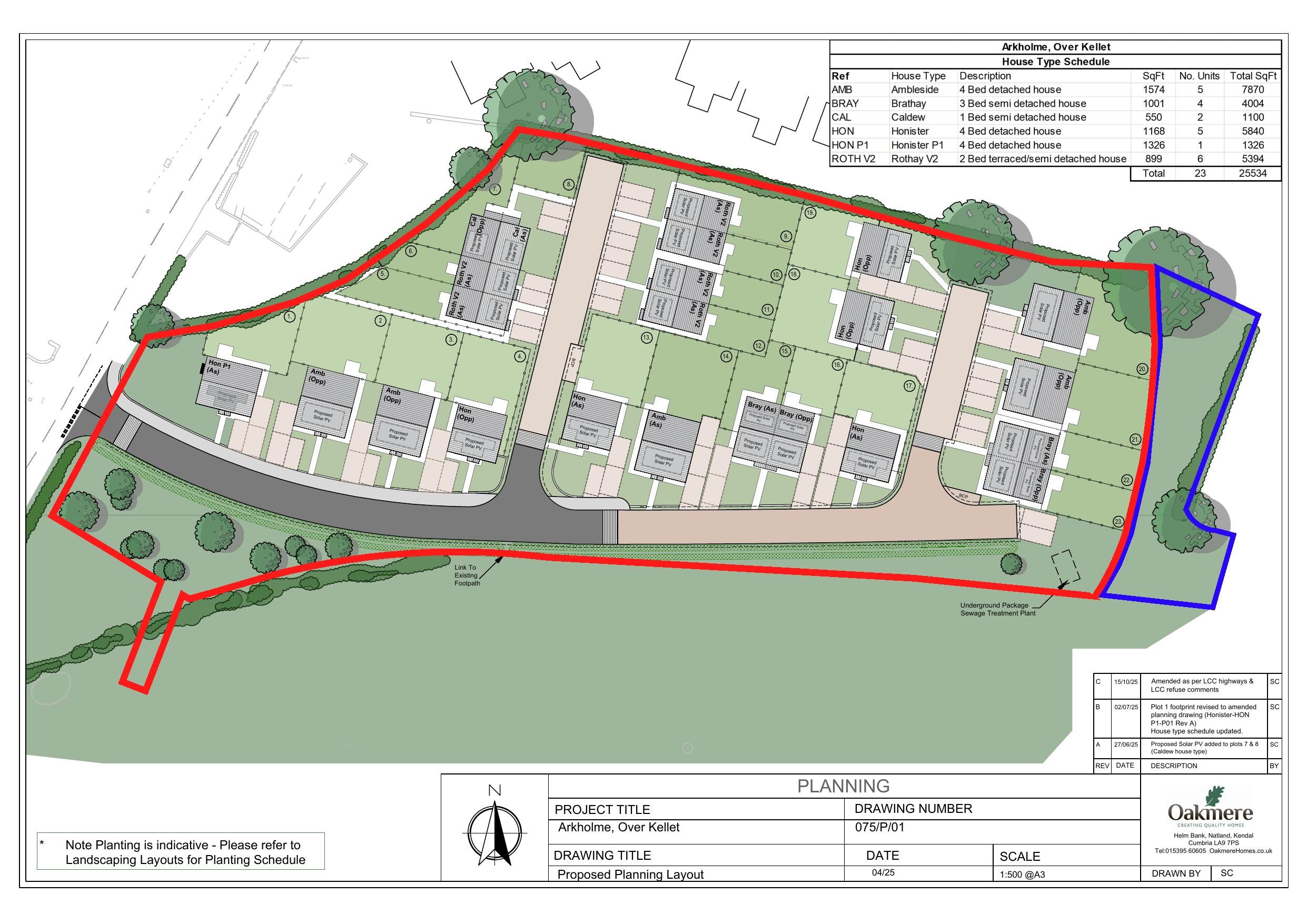 Erection of 23 dwellings with associated access, internal roads, associated drainage works and installation of a package treatment plant