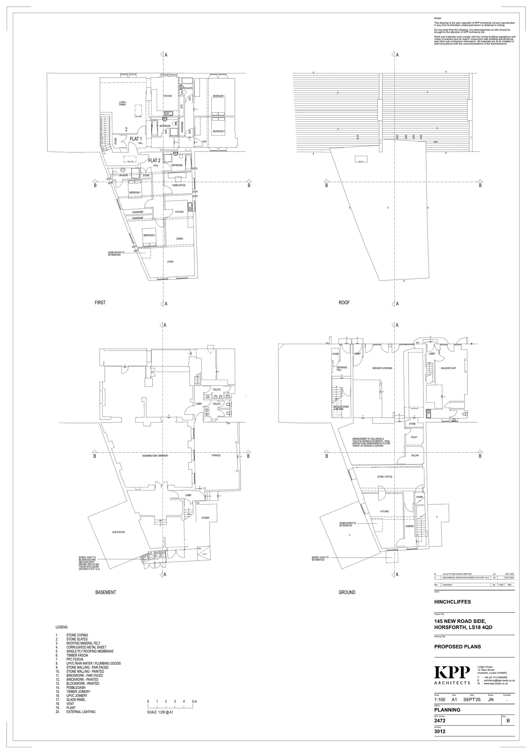 Convert first floor to two two-bedroom flats; reconfigure ground-floor bar; add cycle and bin storage.