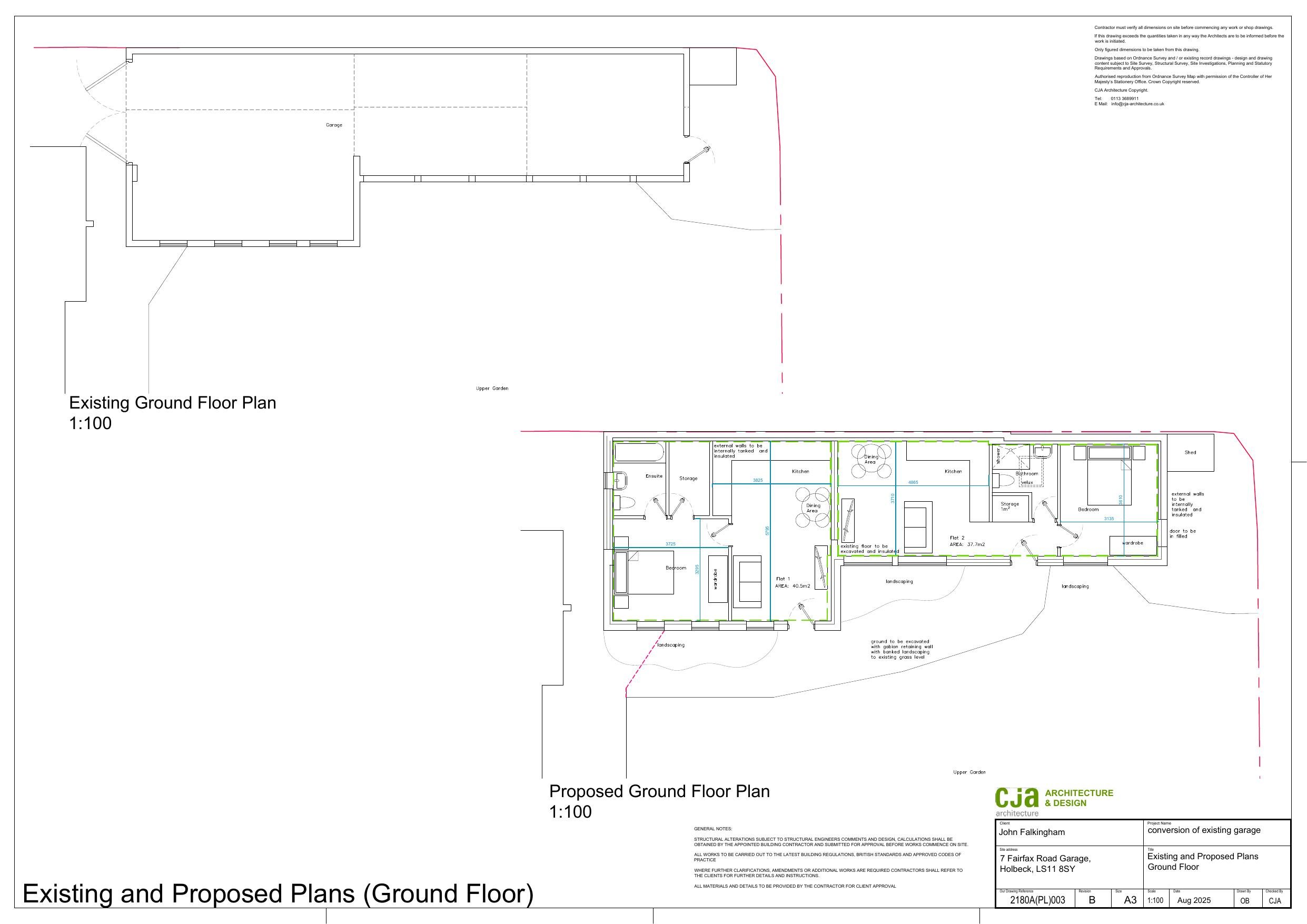 Convert existing garage into two flats with fenestration and landscaping works.
