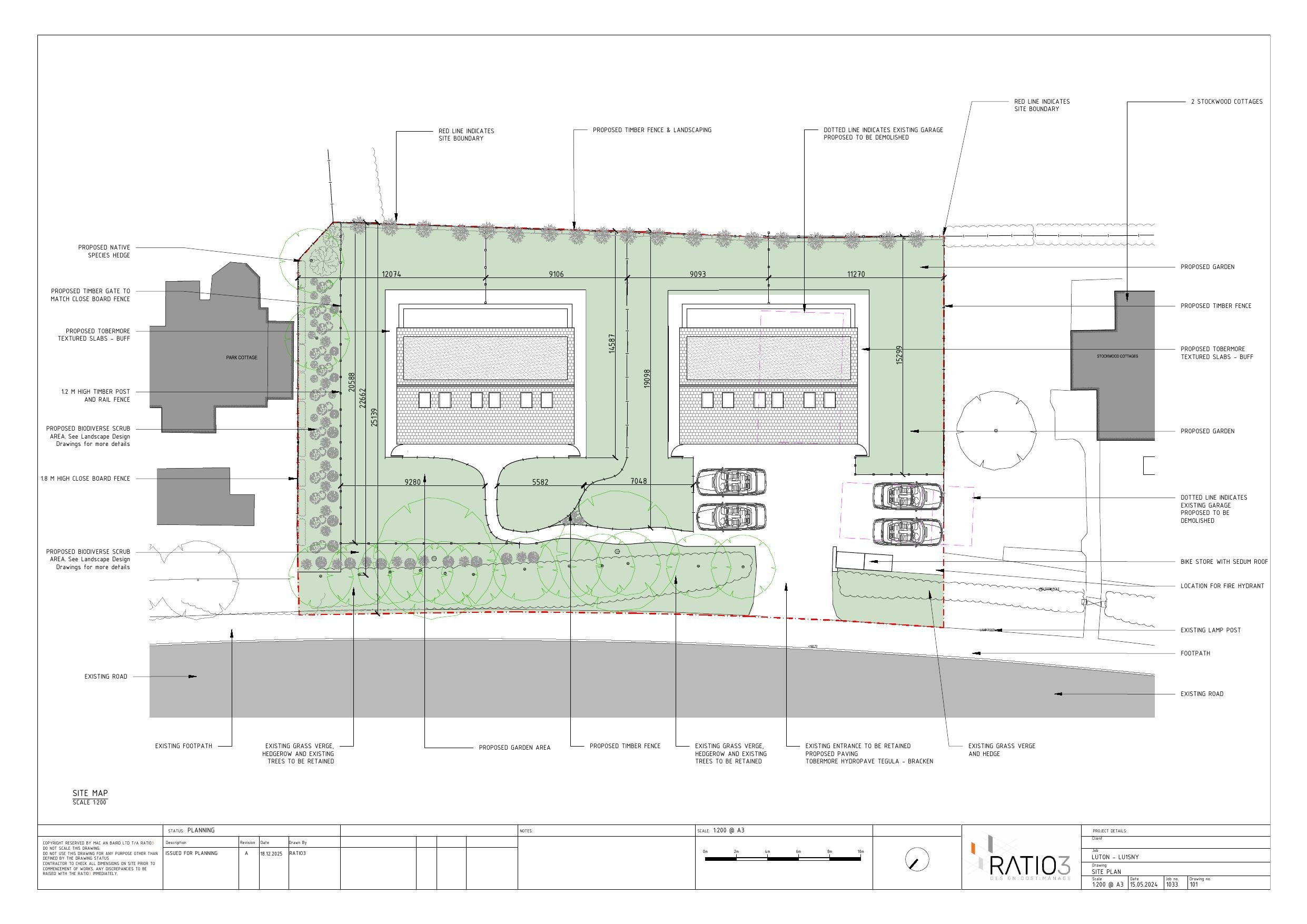Erection of four three-bedroom dwelling houses, together with cycle stores, landscaping and associated site works.
