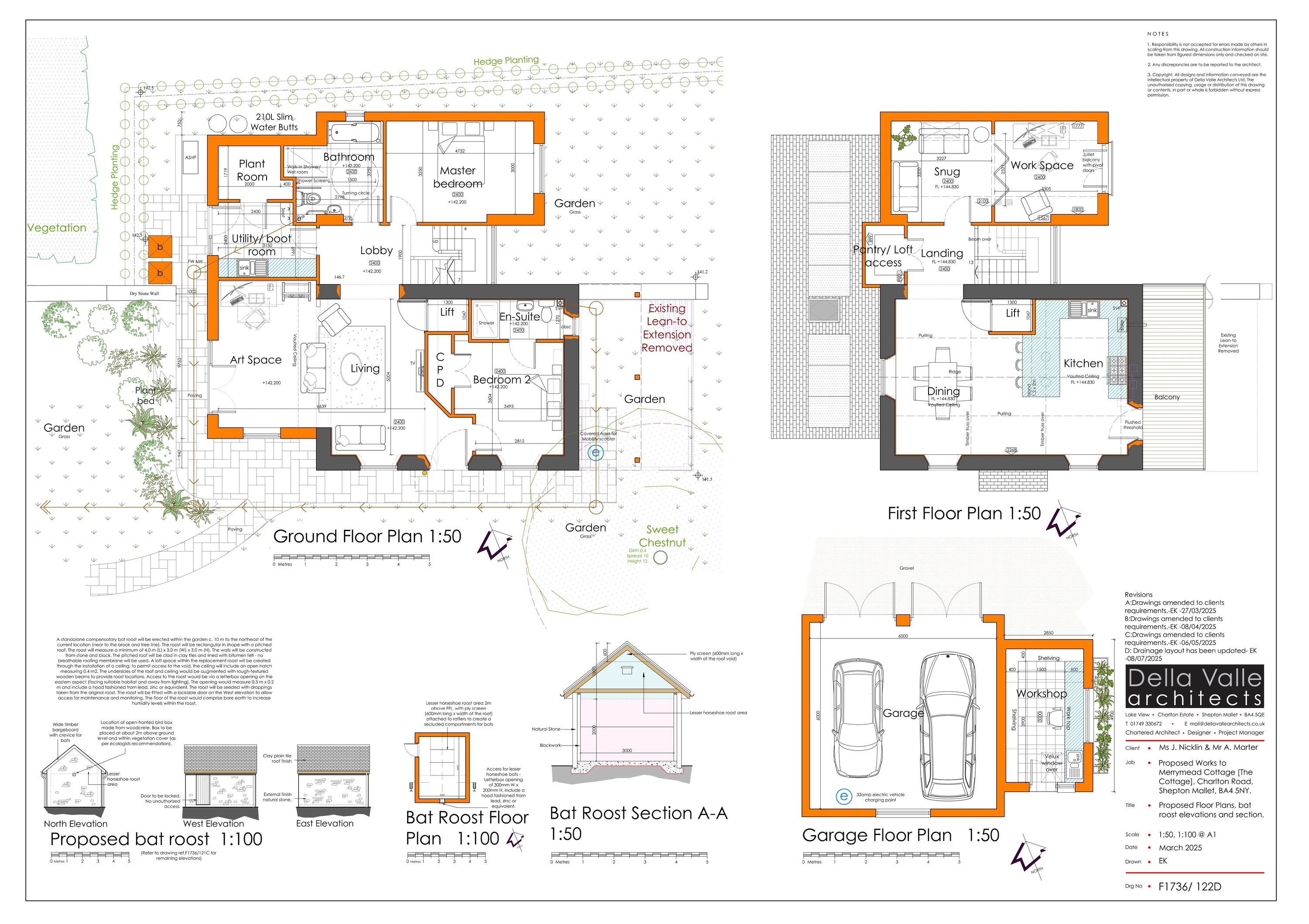 Conversion & change of use of redundant rural building (sui generis) to a Self-build dwelling (C3), inc. a 1.5 storey rear extension, single storey side lean-to extension, erection of a detached double garage with storage room & bat house.