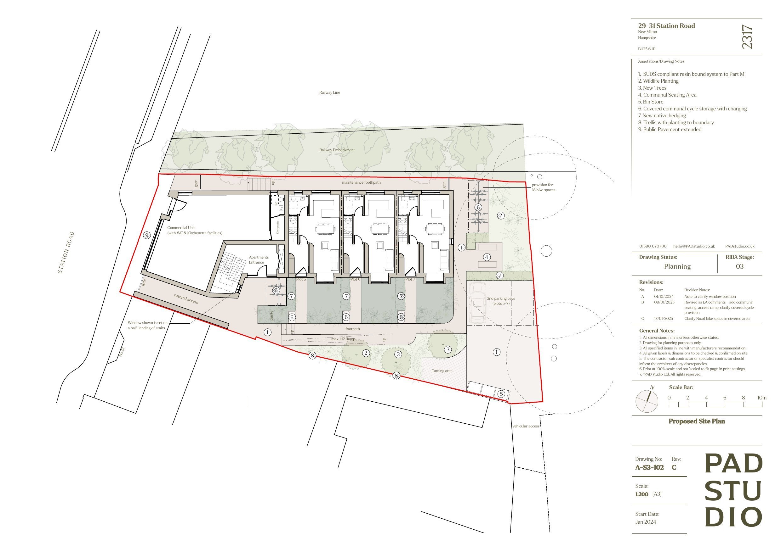 Provision of One Class E Commercial (Office/Retail) Unit, 4 apartments and 3 mews houses with associated landscape works to the land at 29-31 Station Road