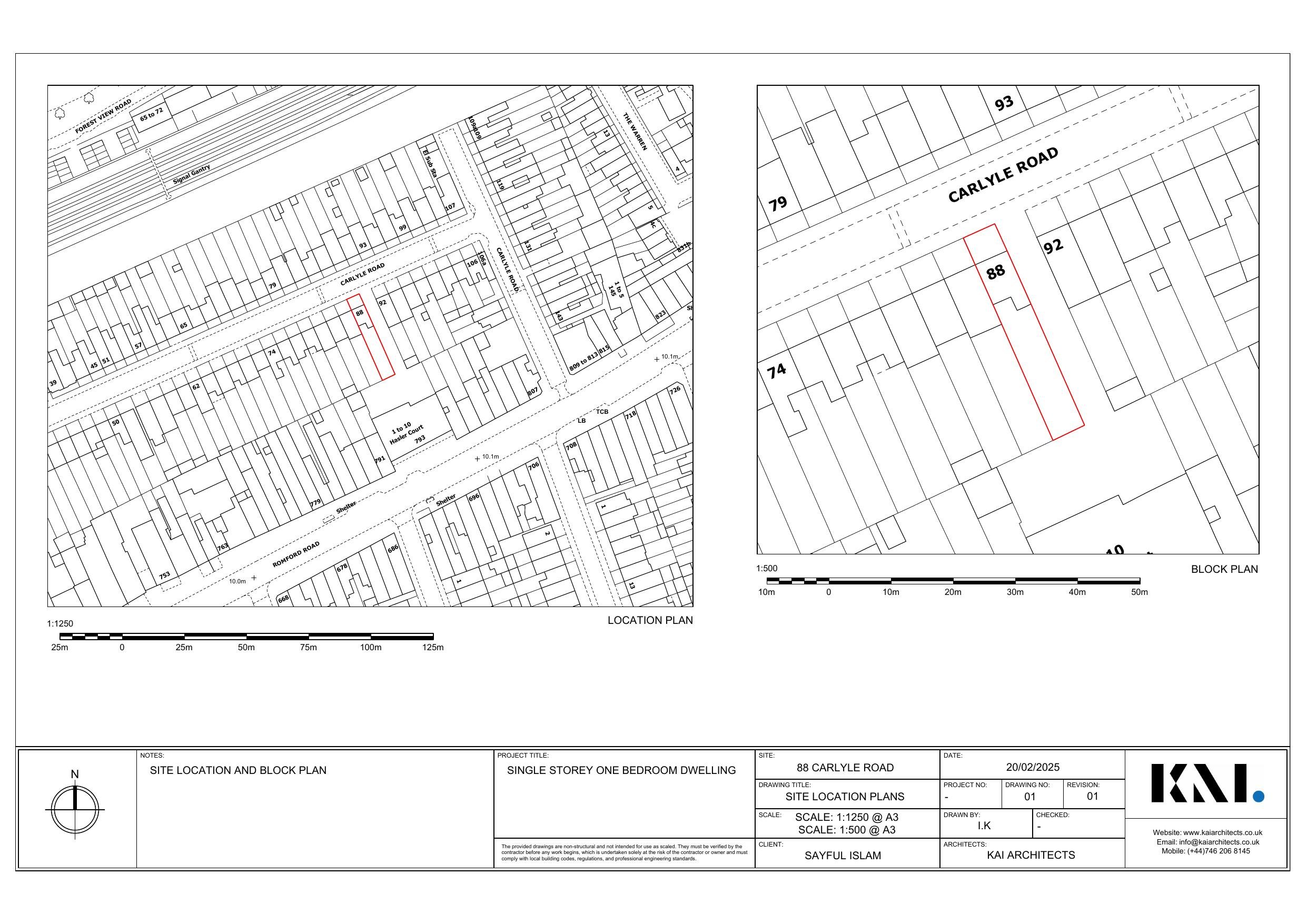 Proposed construction of a single storey 1 bed new dwelling at the rear of 88 Carlyle Road.