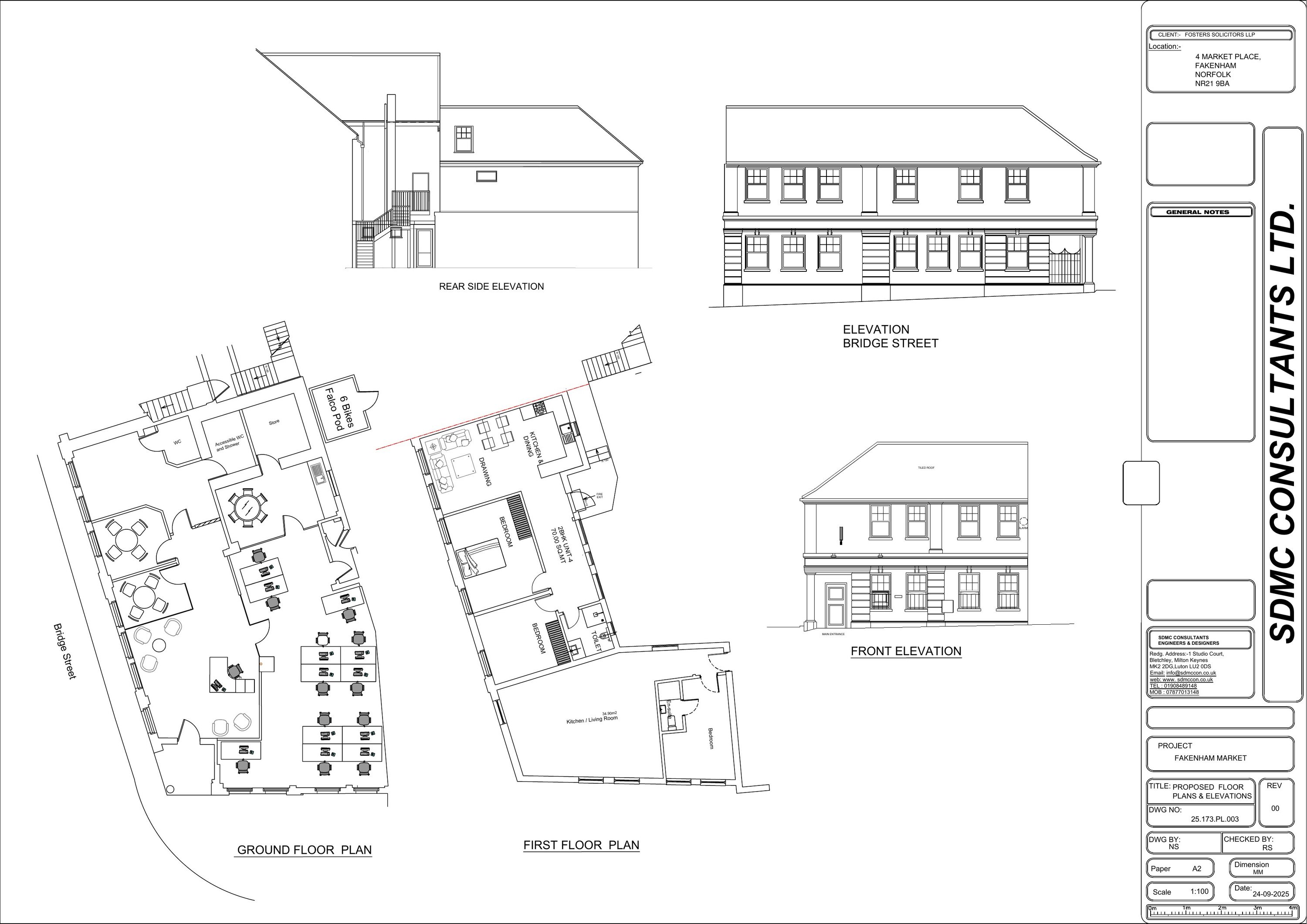 Conversion of first floor vacant class E space into one two-bedroom self contained flat with ground floor internal alterations to create an updated office layout AMENDED PLANS RECD