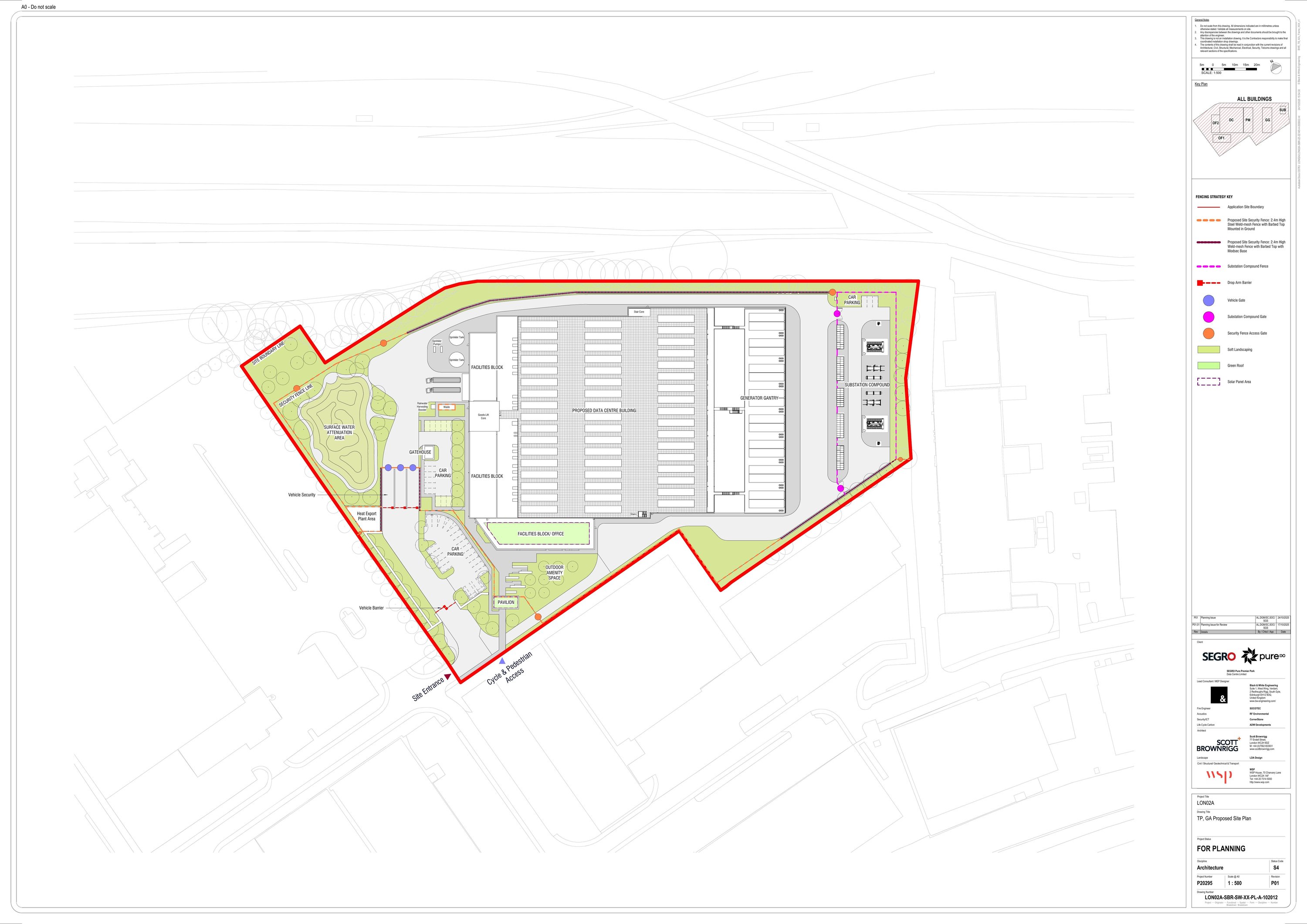 Demolition and phased redevelopment to provide 25,281sqm data centre with ancillary buildings.