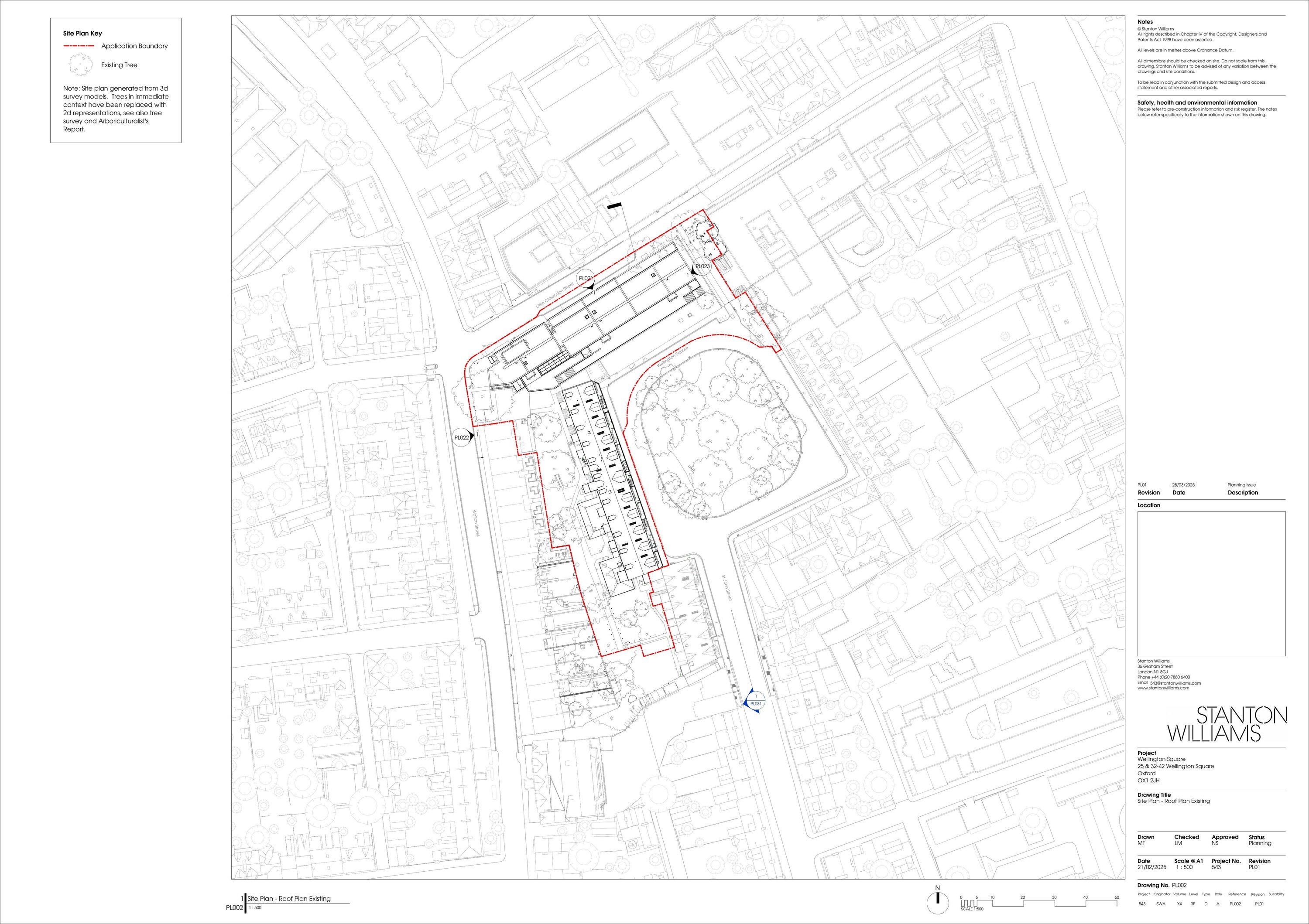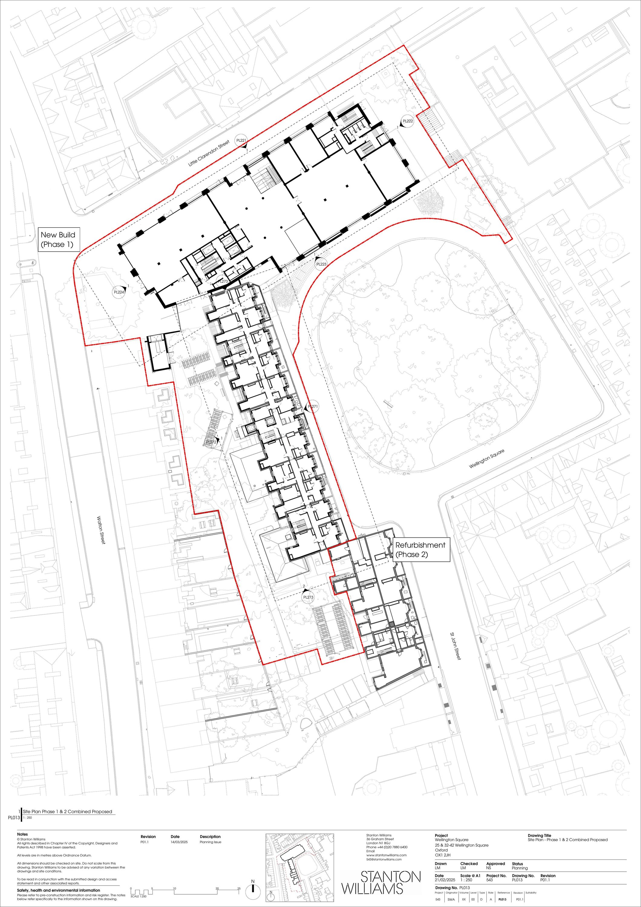 Demolition and redevelopment of 25 Wellington Square to provide a new part 3, part 4 storey building plus basement level for academic, office accommodation and flexible Class E use at ground floor together with roof terrace and associated PV panels. The refurbishment and change of use of 32-42 Wellington Square to provide student accommodation in association with roof dormer extensions, new window insertions and level access. Creation of new hard and soft landscaping, public realm, cycle parking and electricity substation and ancillary works.