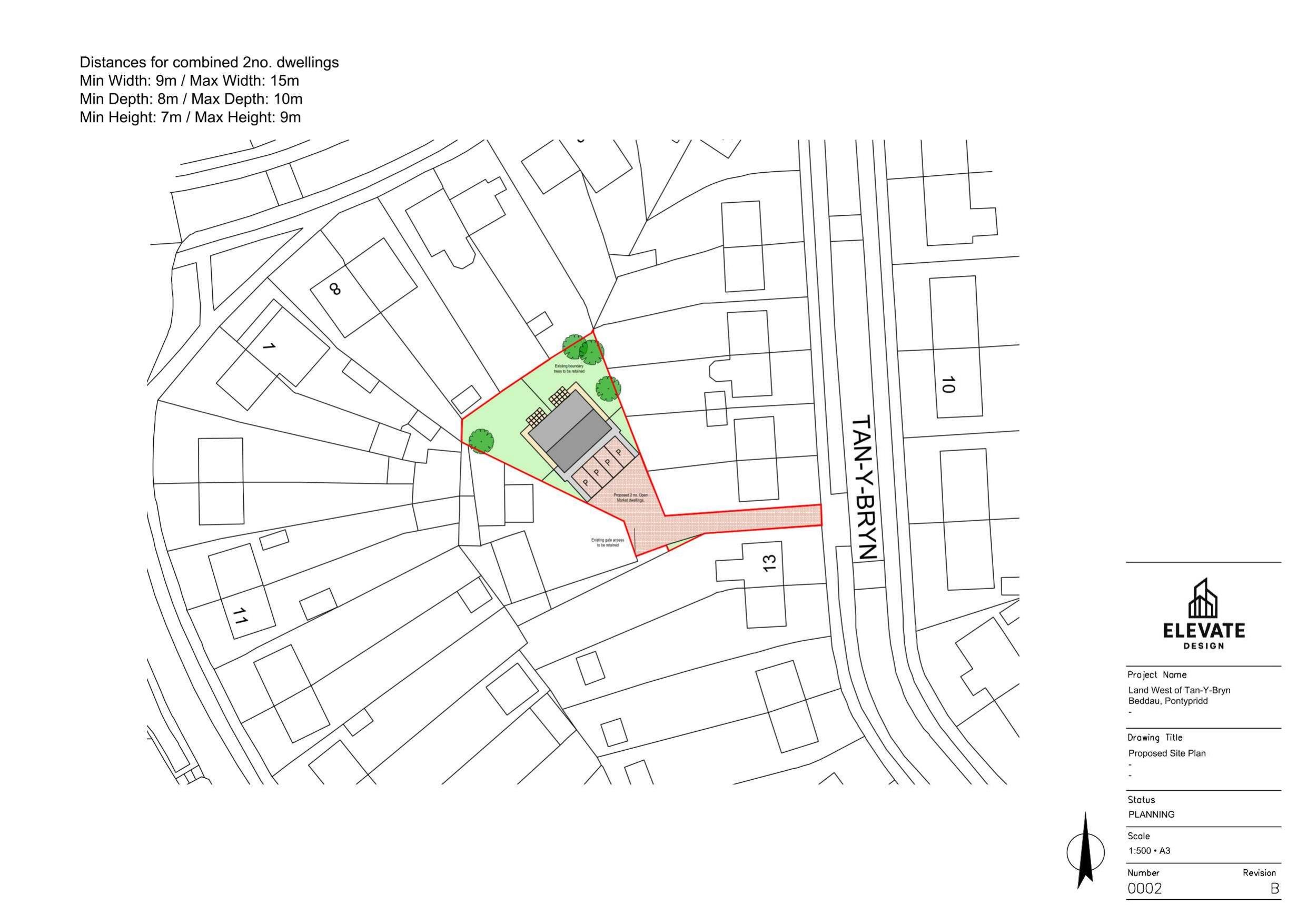 Outline for two semi-detached residential dwellings.