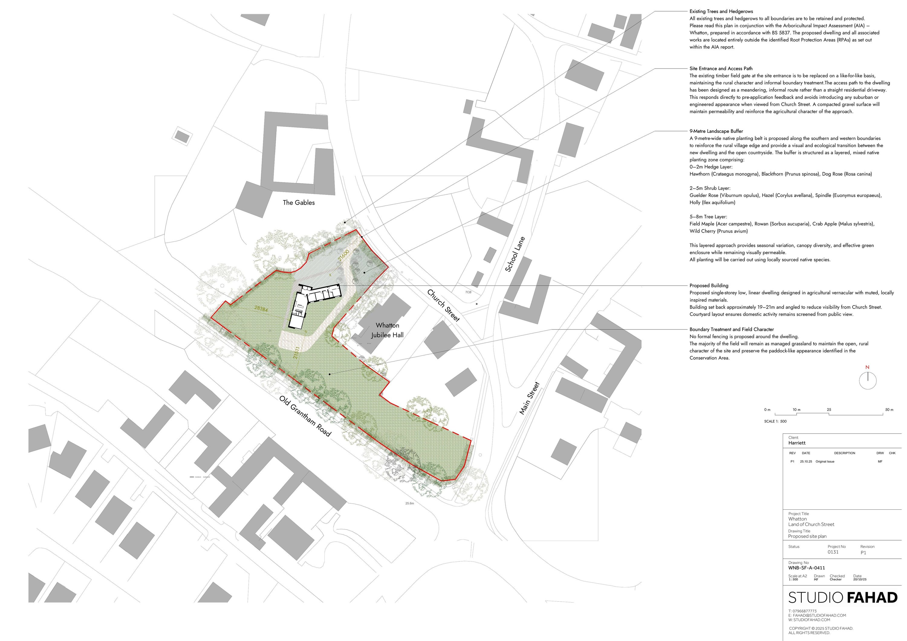 Erection of a single-storey self-build dwelling with associated landscaping, utilising the existing access, and formation of an internal courtyard; including the retention and reinforcement of boundary hedgerows and the provision of a native planting belt.