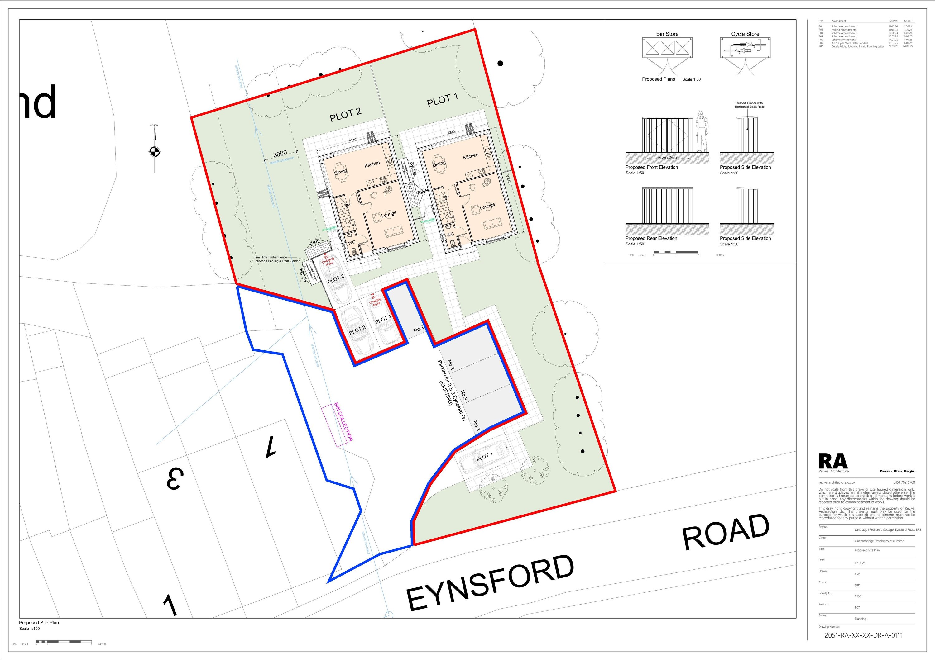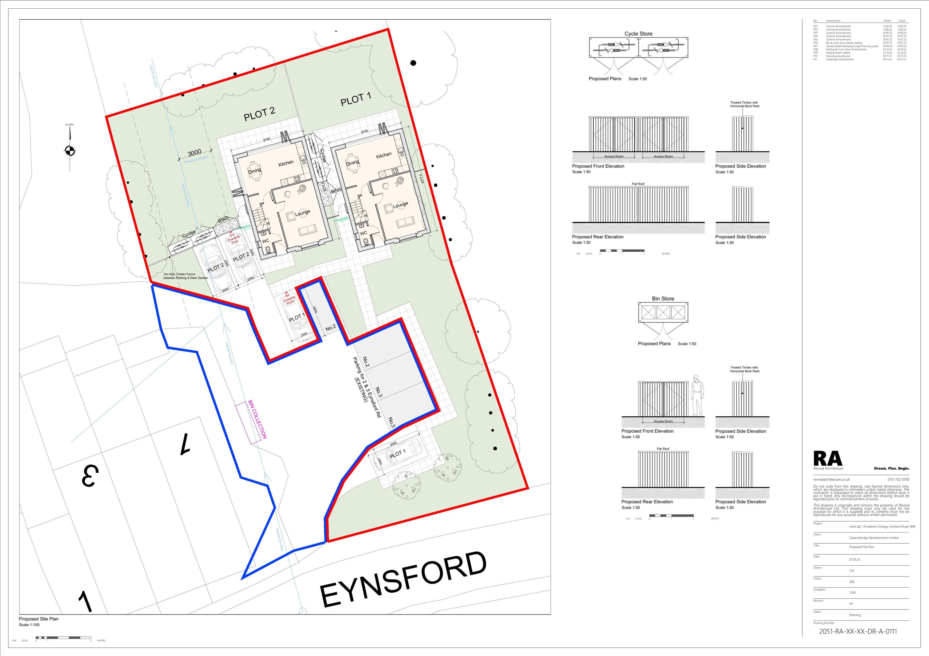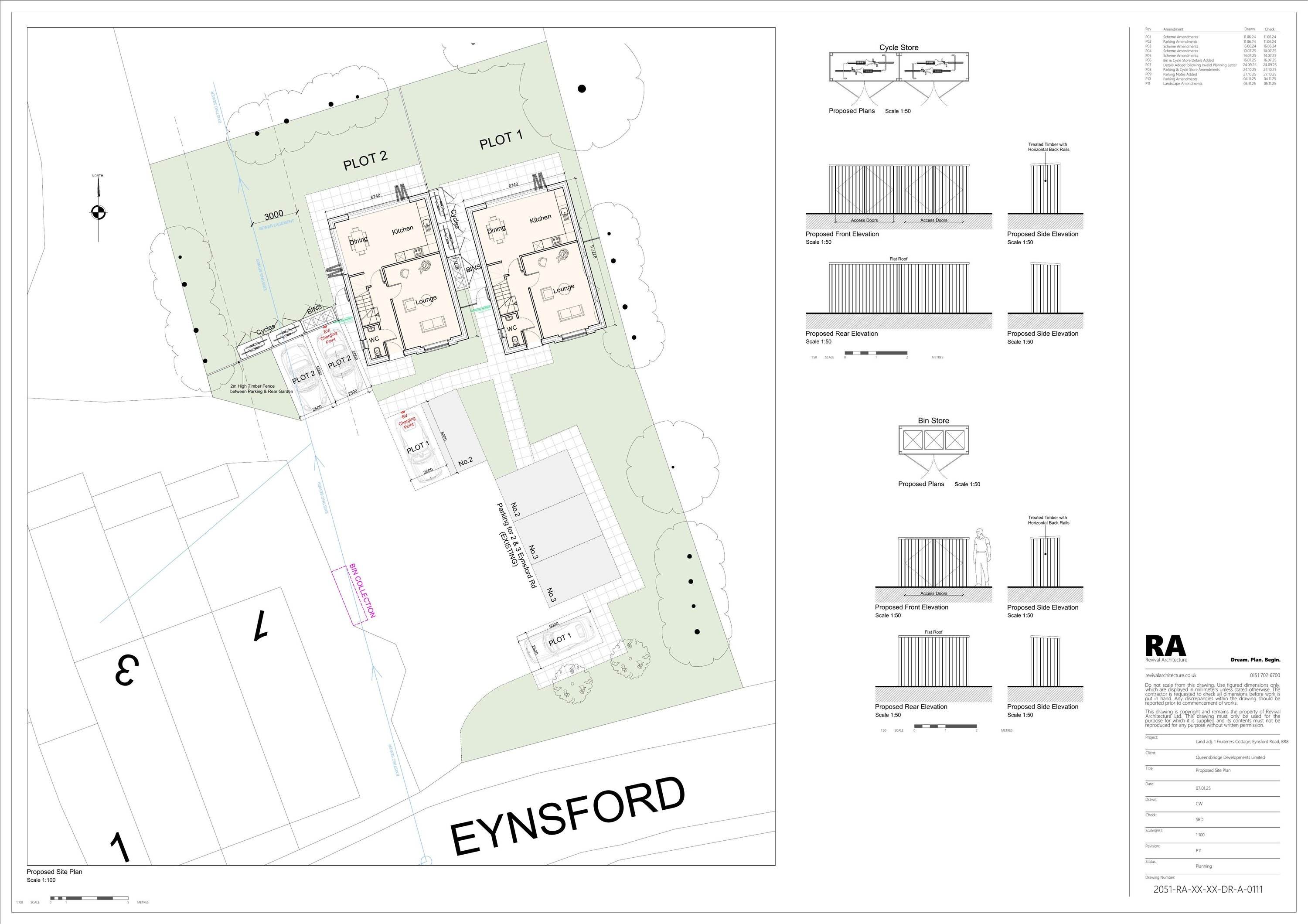 Erection of two dwellings with landscaping, bin and cycle stores, parking and EV charging.