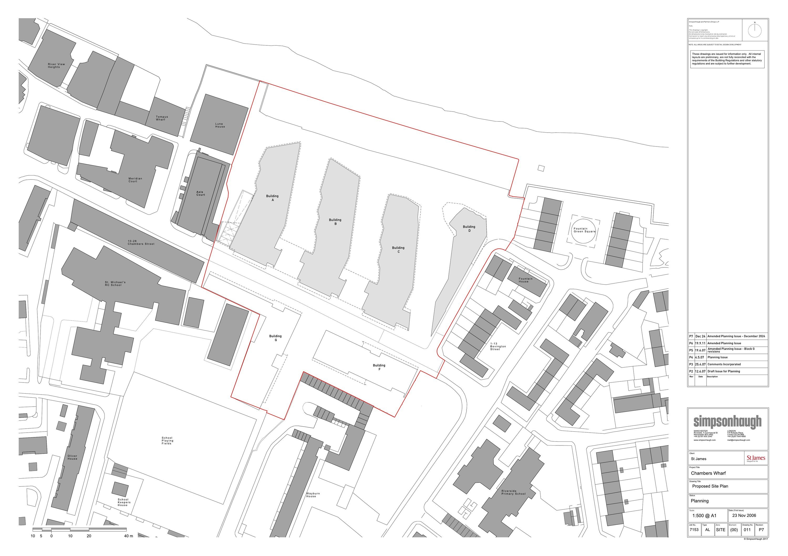 Material amendment under section 73 of the Town and Country Planning Act 1990 to reference number 07/AP/1262, as amended by 13/AP/4266, to secure amendments Blocks A, B, C, and D and associated landscape only including ammendments to the internal configuration, external design and overall massing, mix and unit numbers, and variation of the conditions of consent including to allow for: Changes to façade design and composition of all buildings to meet updated fire regulations and energy and sustainability standards as well as addressing overheating; Adjustments to building footprint, form, and massing; Internal reconfiguration of units to address the current Nationally Described Space Standards, resulting in a change in mix and a reduction in units from 589 to 566; Re-organisation of building cores, additional staircases and inclusion of additional fire safety features including sprinklers; Change from winter gardens to a mix of winter gardens and balconies; Addition of plant, lift overruns, smoke vents and risers on the roof of buildings, contributing to overall increases in building massing and heights ranging between 3.9 and 4.9 metres; Addition of new residential amenity facilities in Building A, C and D, including swimming pool a gym uses; Amendments to condition 34 to reflect the reduction in commercial floorspace by 113m2; Inclusion of revised energy strategy, facilitated by inclusion of rooftop plant; Amendment to basement layout to accommodate Thames Tideway Tunnel infrastructure; Rise in finished floor level of building C for flood protection.