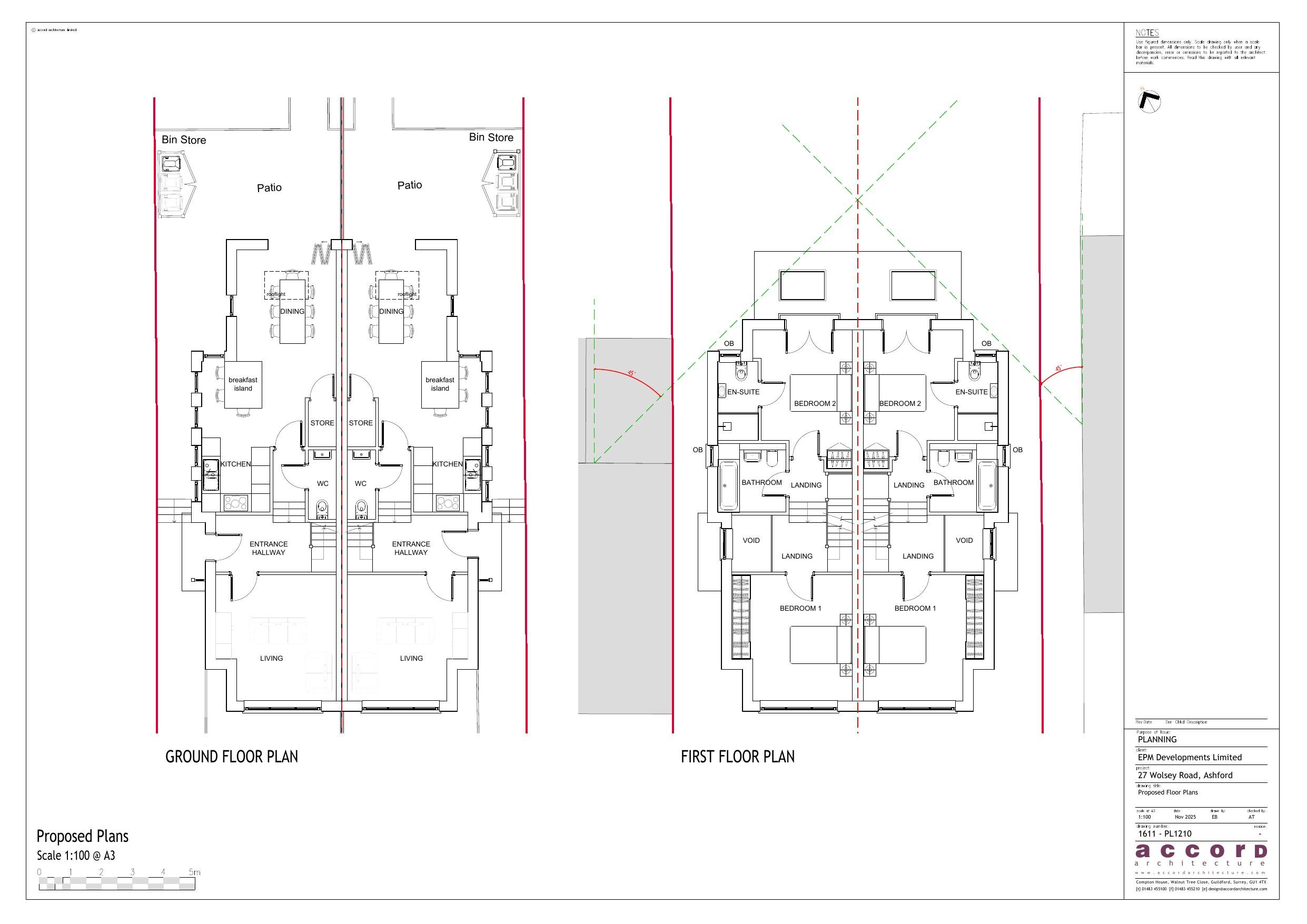 Demolition of existing detached 2 storey residential building and garage. Construction of a new custom 2 storey building with additional habitable accommodation in the roof space to create 2 semi-detached, 3-bed dwellings with bin and cycle storage, and amenity to front and rear.