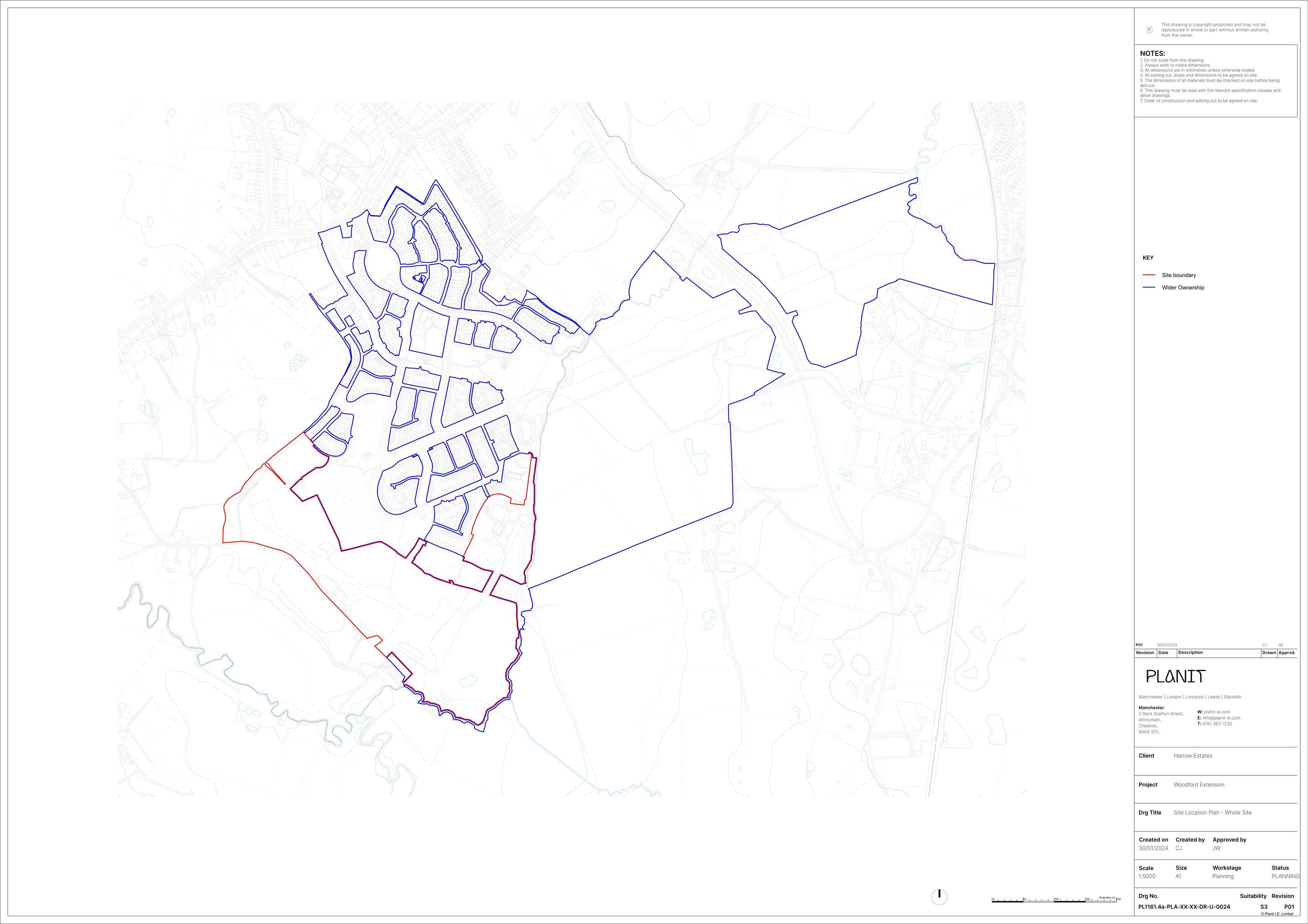 RED LINE BOUNDARY PLAN (P07 JAN 25) - SIZE A1 (SUPERSEDED