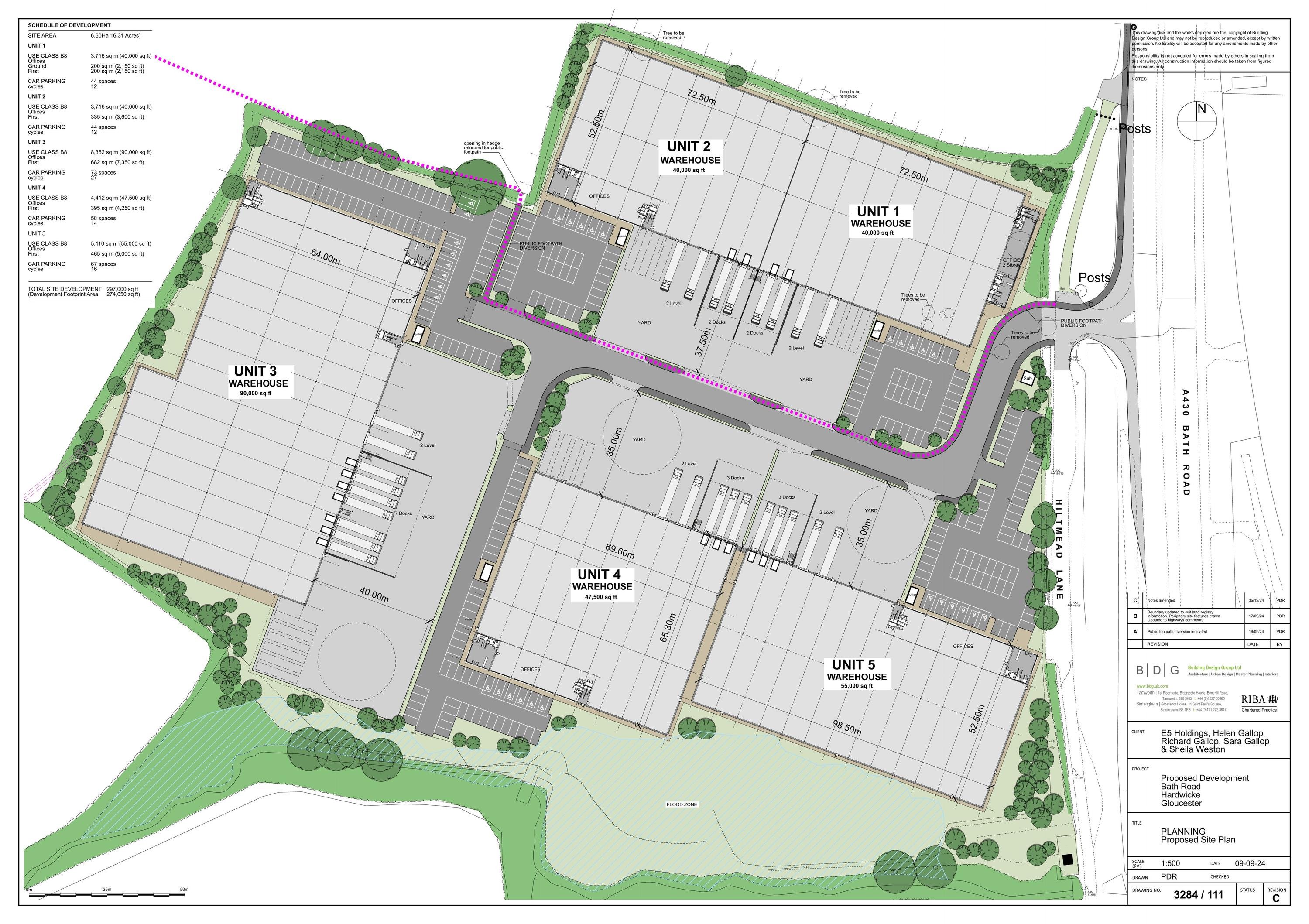 Proposed demolition, site clearance, and construction of employment development, comprising erection of no.4 buildings (Use Class B8), with ancillary office space (Use Class E) with all associated works.