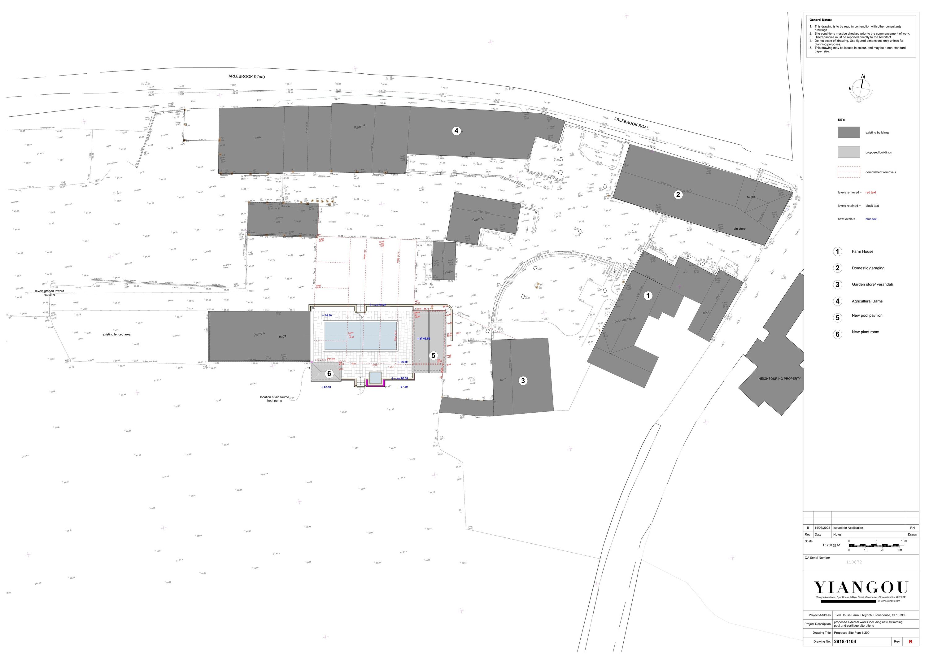 Demolition of agricultural buildings and change of use of part of the land from agricultural to residential (C3). Provision of a swimming pool and ancillary buildings on part of the site.