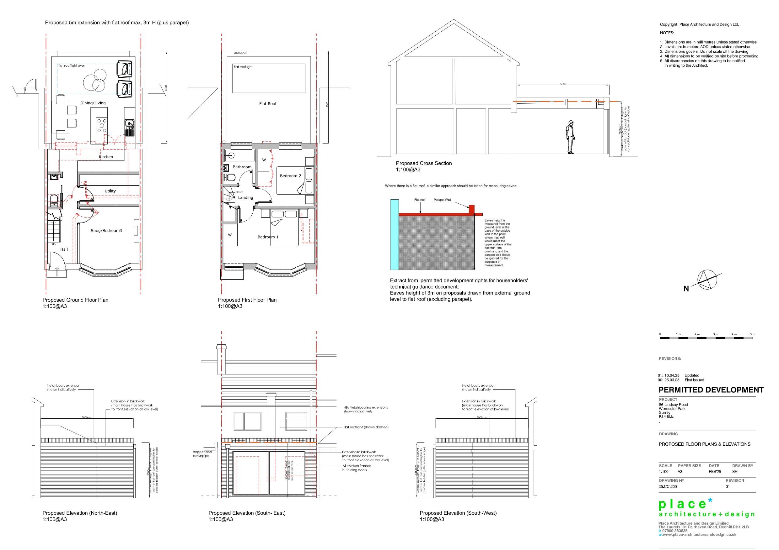 Single-storey rear extension projecting 5m from the original house.